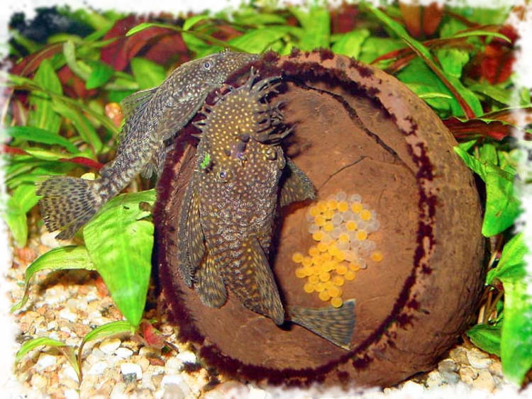 Аквариум оборудуется трубами или длинными пнями, только в них самка будет откладывать икру. Однако, замечены случаи, когда икра откладывается в горшки и просто на коряге. Тем не менее, лучшим нерестовым субстратом считаются пластиковые или глиняные трубки.
