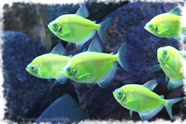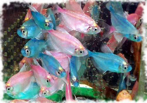 Ну и конечно, многим известная тенденция Glo-fish не обошла стороной этих рыбок. GloFish - это генетически модифицированные флуоресцирующие рыбки. Первыми рыбками, которые были подвергнуты мутации – это Данио рерио. В результате опытов получили рыбок с красной, зелёной и оранжевой флуоресцентной окраской, которая становится ярче и интенсивней при ультрафиолетовом освещении. Подробнее здесь.