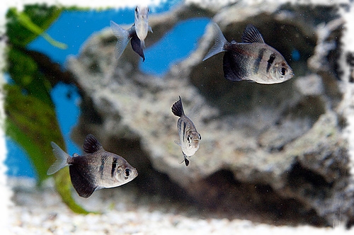 - оформление аквариума, может быть любым: коряги, камни, гроты иные украшения. Но поскольку рыбки имеют темный окрас, то лучше декорировать заднюю стенку аквариум более светлым фоном, грунт тоже выбирать не черный. Укрытия (гроты, пещеры) тернециям абсолютно не нужны, они прячутся разве что иногда в зарослях растений.