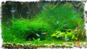 Яванским мхом можно декорировать заднюю стенку аквариума, подкладывая его за закрепленную крупноячеистую сетку (желательна сетка нержавейка, а не пластиковая). Таким же образом можно украсить и дно аквариума.