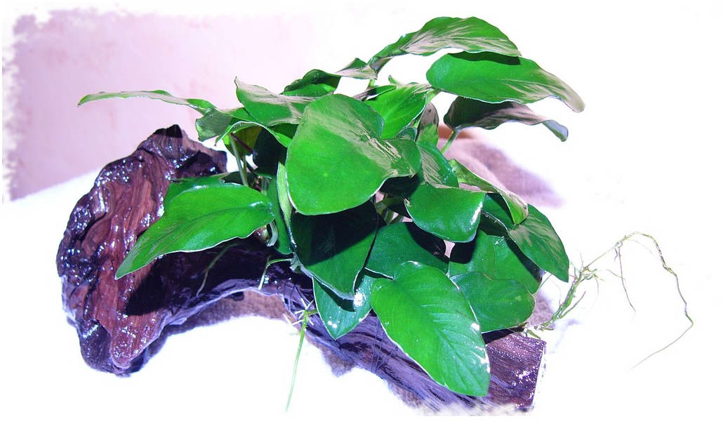 В аквариуме растение лучше высаживать у боковых стенок на заднем плане. Анубиас растет медленно.