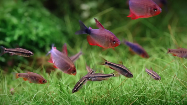 В остальном рыбки абсолютно неприхотливые. Как и многие терты наши с вами Пежоны — это стайные юркие рыбки. Содержать их лучше табунчиком от 5 хвостов. Рыбки мирные, спокойно сосуществуют даже с креветками. Но есть одно, но — не стоит их содержать с медлительными, тугими на реакцию рыбками. Флегматики просто не будут успевать хватать корм, Пежо все съедят. А флегмы будут вечно голодать и есть шансы, что вскоре они отправятся к Нептуну в страну вечного мотыля.