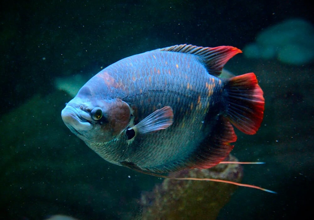 Эти рыбки — настоящие долгожители и интеллектуалы. Они могут жить по 20 лет, узнают хозяина в лицо и даже позволяют себя гладить. А ещё они, как и положено лабиринтовым, умеют дышать воздухом, заглатывая его с поверхности.