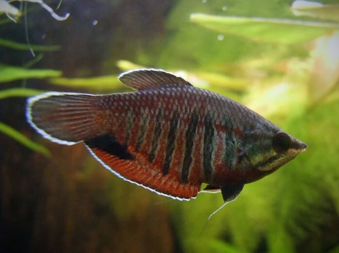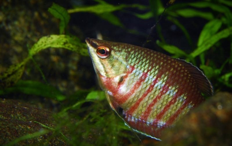 Кстати, Гурами Вайланта — обладатель уникального инструмента — лабиринта. Этот орган позволяет им дышать воздухом. В природе они живут в болотах, где кислорода в воде кот наплакал, так что это умение — настоящее спасение.