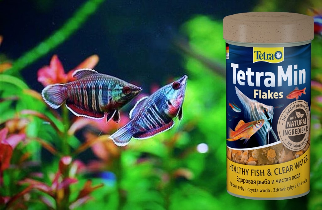 В дикой природе Вайланты питаются мелкой живностью: червячками, личинками и рачками. Дома мы предлагаем им перейти на качественный корм. TetraMin в хлопьях или мини-гранулах — классика, проверенная годами.