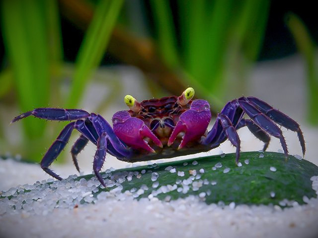 Крабы-вампиры всеядны, но в душе они скорее любители салатов. В природе они питаются детритом (органикой, которая перегнивает). Это очень удобно: если вы уехали на выходные, крабик не пропадет — найдет чем перекусить на суше.