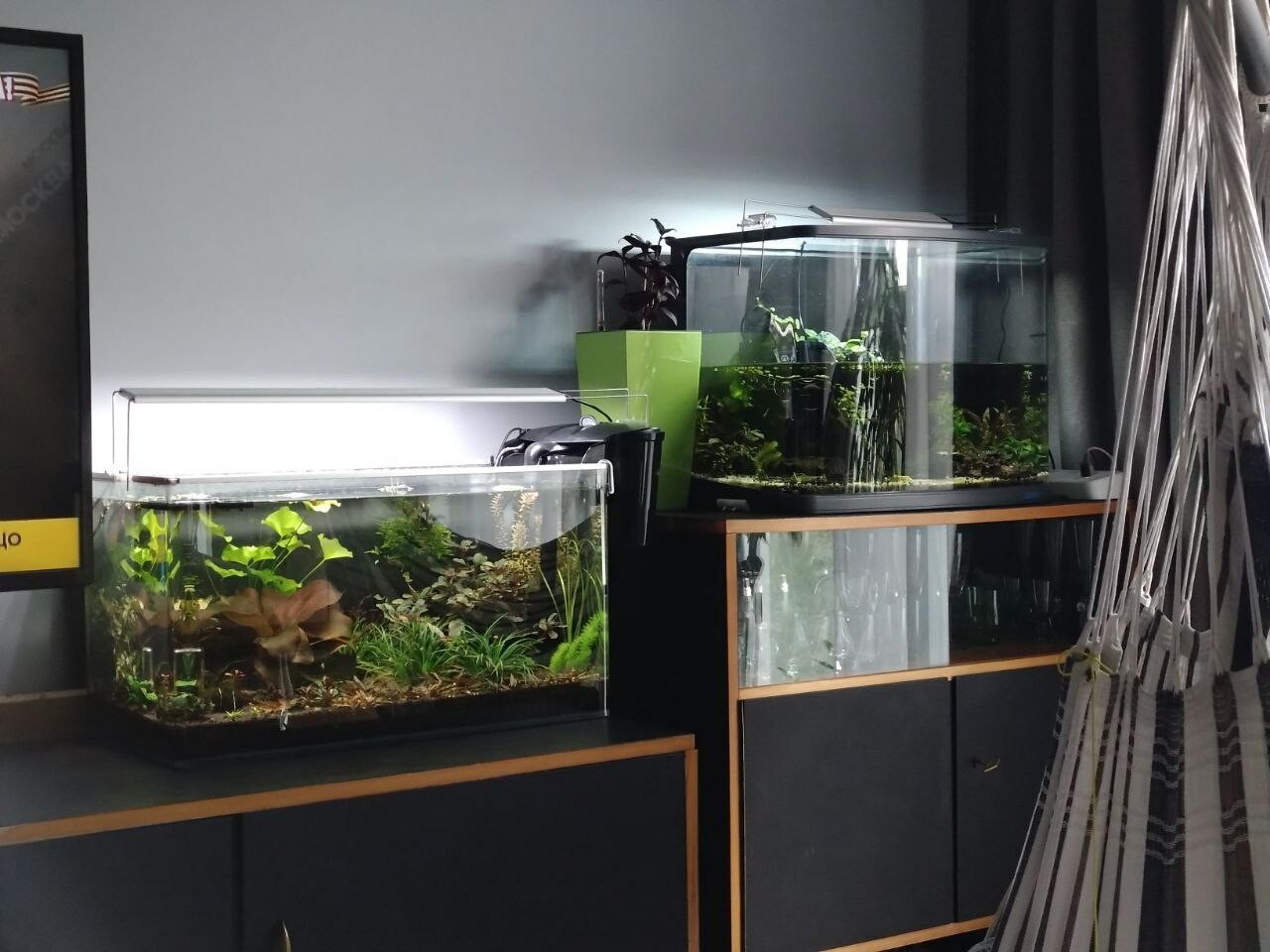 Пятница 4322 Жалоба Опубликовано 13 мая Просто фото без прикрас. Нагромождение акв теперь такое. Джебо вместо кубика. Поменять бы их местами, думаю, было бы гармоничнее, а то прайм зажат... Вот такие малипусенькие плавающие листья у нимфейки, так что места должно хватить не одной даже, думаю Лопух симпли раунд Пятнисто-полосатики стар и млад. Недавно разжилась 13ю малышатами местными (ооочень дешево в сравнении с магазами) Ну и Рио. Недавно был в запустении практически, сейчас нарастает. Хорошо удалось зарастить фильтр, но из-за этого он перестал выполнять функцию скиммера, заказан отдельный на этот случай. Ворчушек нормально сфотать не удалось )) 10 Idzumi, AlexLi, Paracheirodon и 7 люди отреагировали на это Поделиться сообщением Ссылка на сообщение