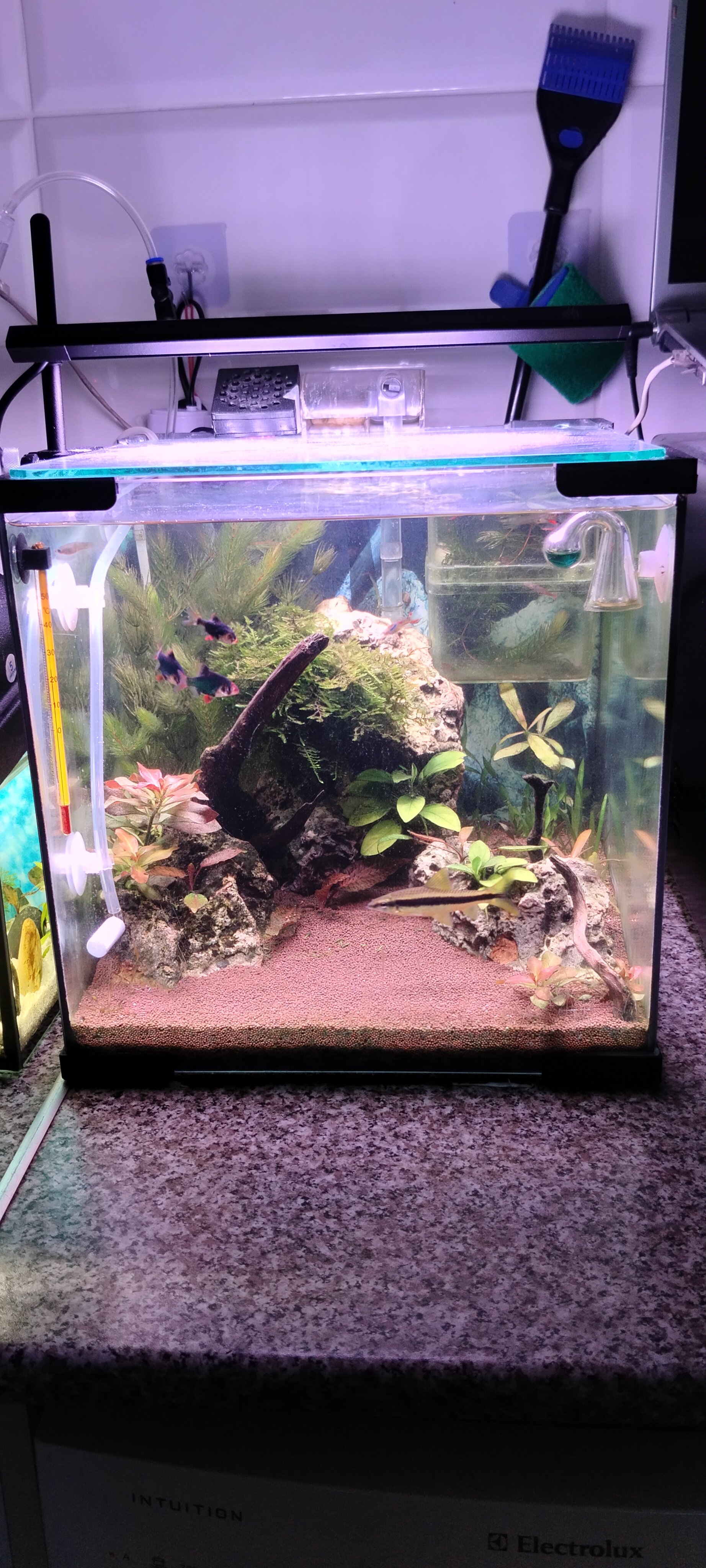 На сегодняшний день аквариум ожил уже) красное стало красным, зеленое зеленым😁анубы и крипты пускают новые листики каждую неделю. Задумываюсь над тем чтобы купить растения посложнее.