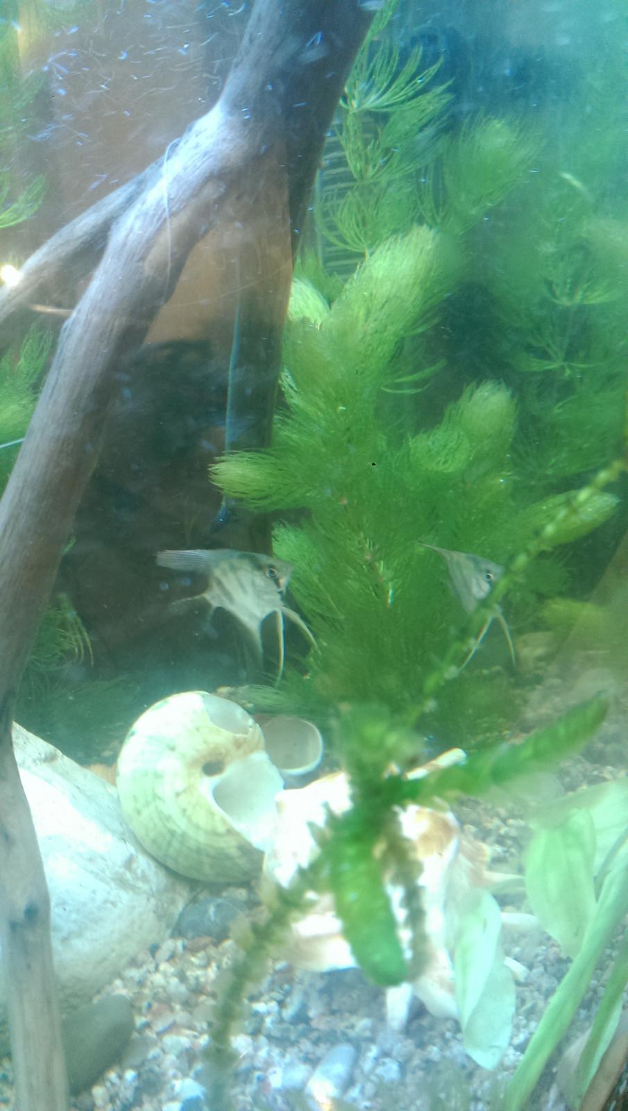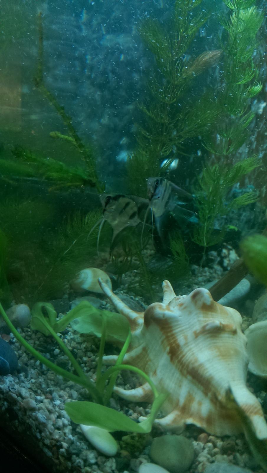 Ракушки я бы убрала. От них сильно повышается жёсткость аквариумной воды. А щелочную воду плюс течение очень любят водоросли.