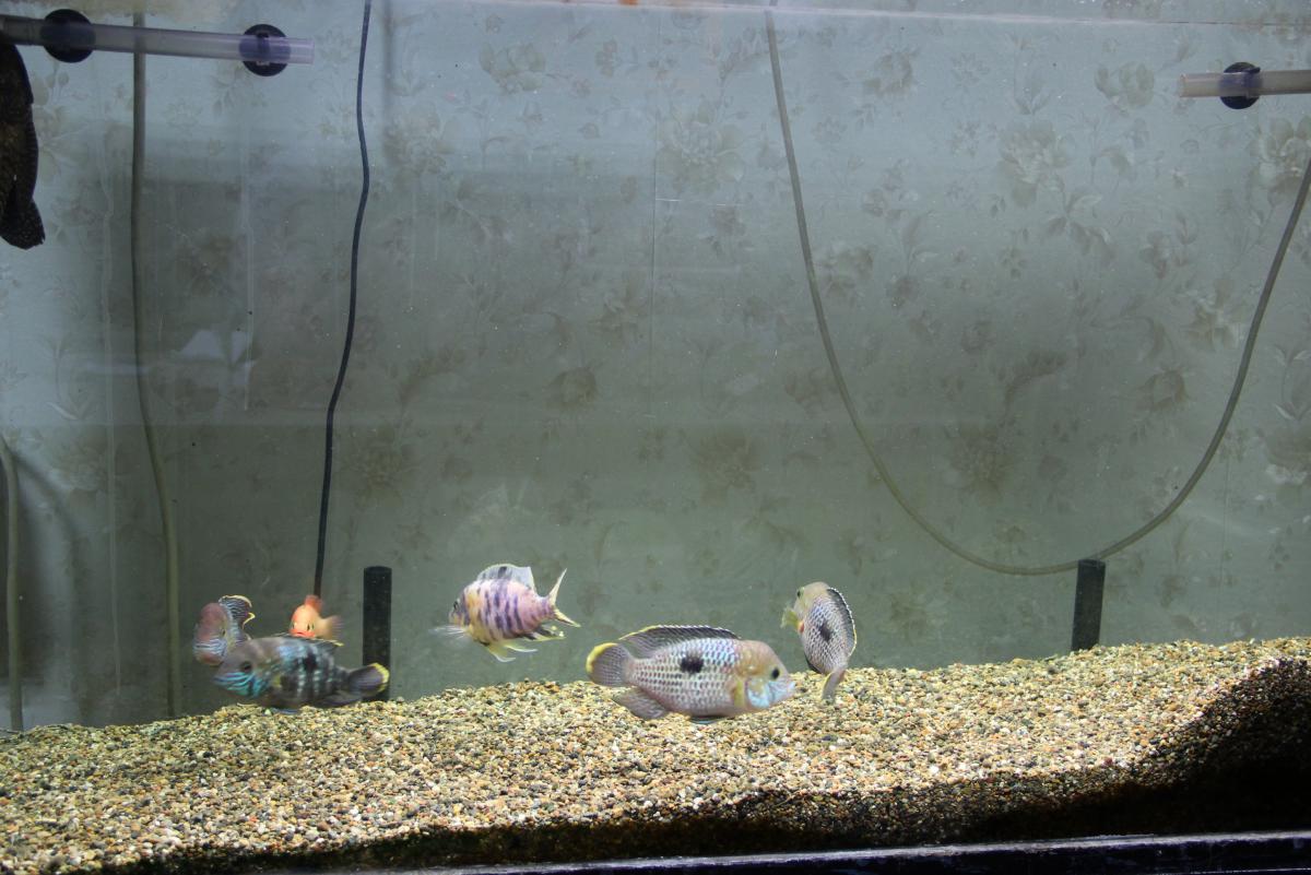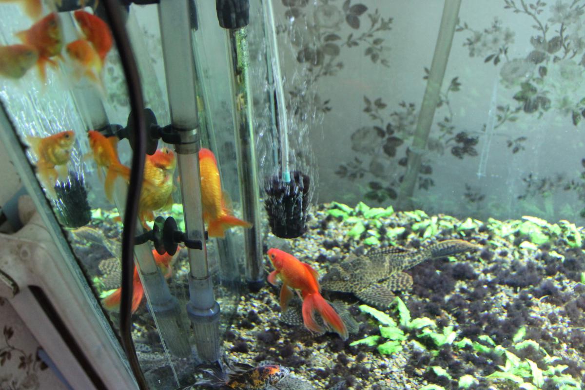 Грунт в двух аквариумах одинаковый, это сеянная галька 0,5 мм. На 600л. - 2 по 40 ватт, и 2 по 30 ватт. Итого 140 ватт.