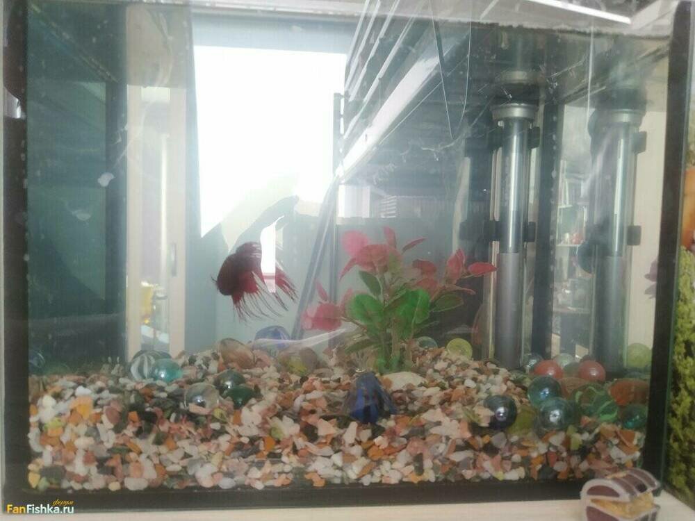 Paren 0 Жалоба Опубликовано 24 марта, 2021 Спасибо, за ответ! Видимо, я неверно выразился. Грунт мылся марганцовкой неделю назад. Затем, через несколько часов, петушку стало лучше и он начал пускать даже пузыри (вроде, на следующий день). Через несколько дней (не помню точного количества) ему снова "поплохело" - и он опустился на дно. После того, как ему поплохело, я дождался, когда пройдет неделя. И вот вчера (когда уже прошла неделя), и попробовал почистить уже грунтоочистителем (неудачно). Итог: лучше петуху не стало, да и мне от его вида тоже @Любимая Бусинка Вот фотографии. Вчера, что-то негрузились. Здесь, кстати, грунт видно @Demetris @AlexeyBr Фильтрации и аэрации нет. Есть терморегулятор. Насколько я знаю, петушки - лабиринтовые рыбы и им необязательна аэрация, а вместо фильтрации - подмена части воды (если так неправильно - поправьте). Растений нет Ещё вечером делал фотографию аквариума. И вот здесь прямо видно, как у петушка блестит грудь серым Поделиться сообщением Ссылка на сообщение