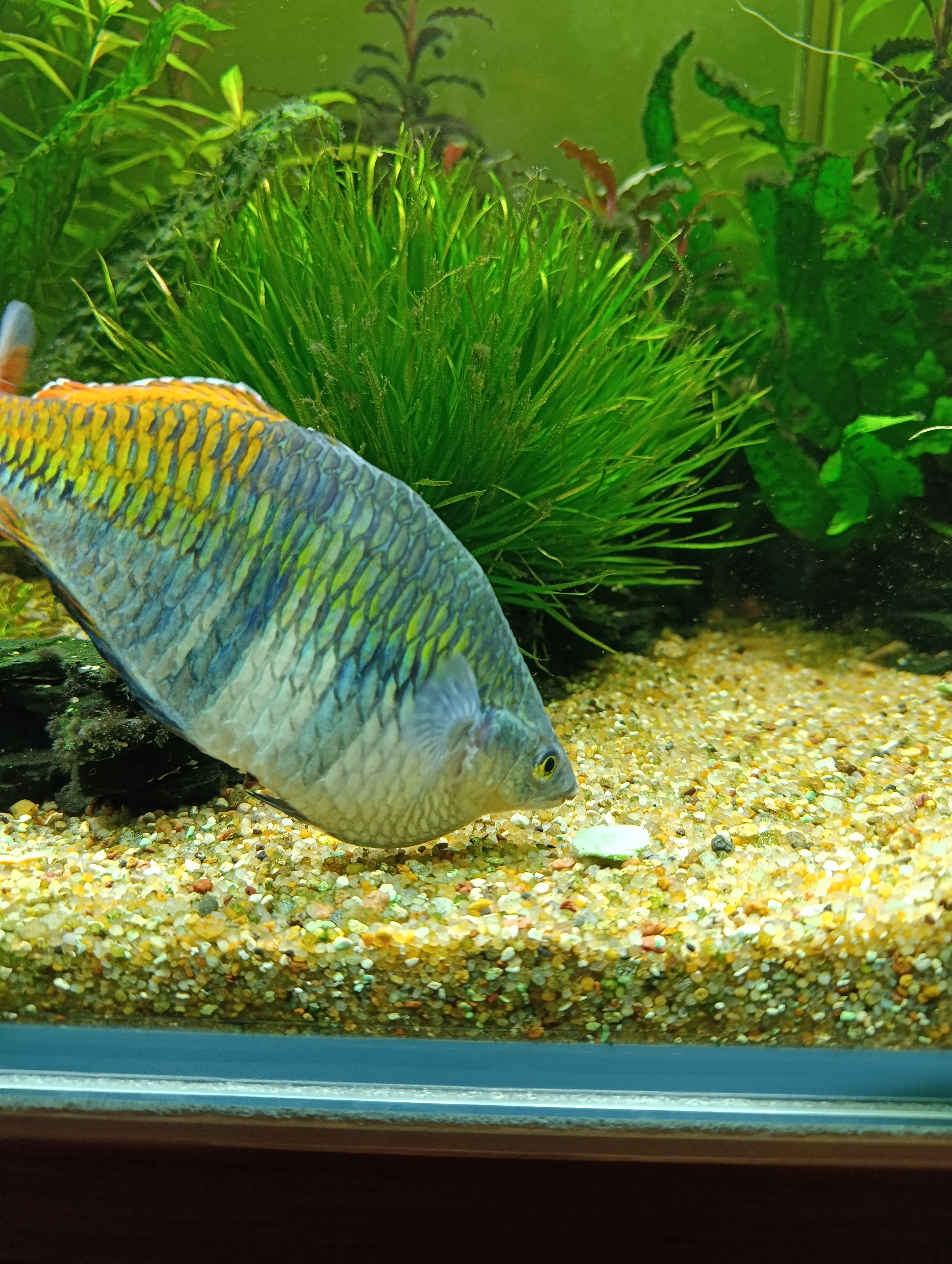 Волька_ибн_А 7175 Жалоба Опубликовано 28 января Пока я плакался на трубки, неподходящие для нереста анциков Claro, эти самые claro тихой сапой чой-то там мутили, похоже. Сегодня кладу кабачок в акв, а на него, вместе с здоровенной старой девой анциструсихой выползает нечто... Качество картинки, как всегда, никакое (ещё и муть дикую анциструсихи подняли, устраивая разборки за корм), но малёк виден. Хоть и один-единственный, а сигнал - движуха есть! Пугает, правда, его безбашенность. Лезет за жрачкой не видя никого вокруг, все ему не конкуренты, типа. Пару раз был накрыт пастью крупной анциструсихи но таки уцелел. Пока. Балбес. P.S. Хотел отдельным сообщением. но дурень-сайт решил объединить два текста с разрывом в 20 минут... немного нерыбного, неаквариумного... шляюсь сейчас по часовым сайтам, глазею на часики, панимаишь. Заглянул на сайт Alltime (лет двадцать назад купил у них часы, тИкают до сих пор, хоть и простецкие, всего лишь Orient). Выставил фильтры по минимуму "мужские/с автоподзаводом". МЛЯ!!! Ну кто ж вываливает в один ряд невнятный некий Штюрлинг за двадцатку и тут же Брейтлинг за овермиллион??? ору! Не , я не против Брейтлинга. Но так же нельзя. Так же слюной захлебнуццца можнаааа 2 4 Поделиться сообщением Ссылка на сообщение