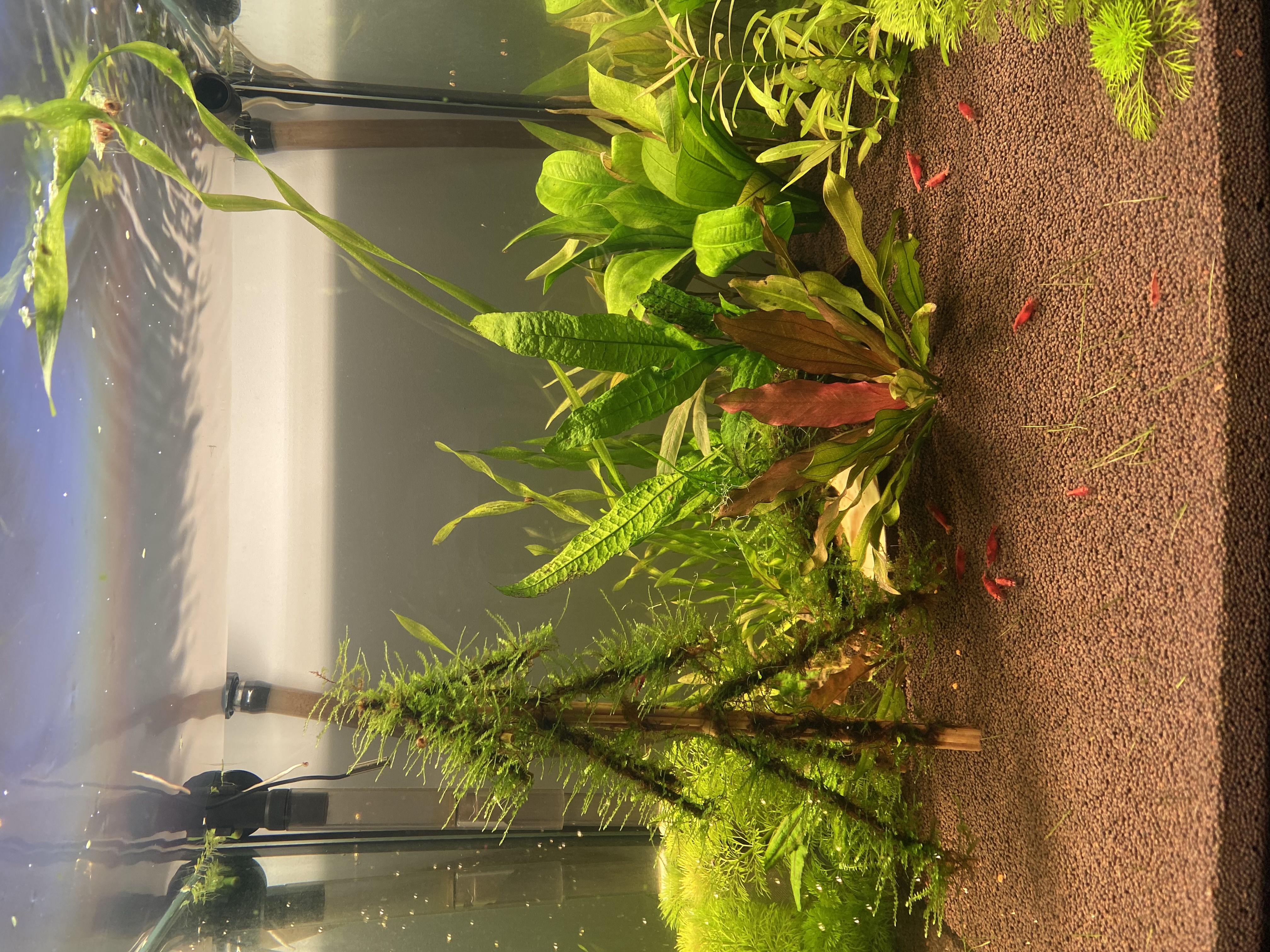 mardich 11 Жалоба Опубликовано Saturday в 13:27 Эволюция 72-литрового мира: от пустого стекла к первому потомству. Всем привет! Хочу поделиться историей запуска своего долгожданного травника. Мой путь длился с 2021 года, когда я начал закупать оборудование и сам аквариум. В связи с обстоятельствами, всё это бело законсервировано и отложено в долгий ящик. И вот пришло время осуществить мои идеи по этому проекту! Несколько месяцев назад, а точнее в декабре 2025 я достал из закромов свои запасы! За это время я прошёл через всё: от бактериальной мути до радости обнаружения первых крошечных креветок. Делимся опытом и лайфхаками! 🧱 Этап 1: Фундамент (Декабрь) · Аквариум: 72 литра, тумба, коврик. · Оборудование: Внешний фильтр Tetra EX 800 plus, светодиодный светильник Chihiros A 401 - 24 w. · Грунт: Питательный субстрат — основа будущего пышного сада, пропант. · Декор: Натуральная коряга мангра (вываренная). · Главный принцип: Терпение. Никаких рыб в первый месяц! 🌱 Этап 2: Посадка и старт (Декабрь) Высадил первых «первопроходцев»: · Эхинодорус Блехера — мощный солитер на задний план. · Криптокорину — для объёма. · Папоротник тайландский и Яванский мох — на корягу. · Кабомбу, валиснерия — для пушистого фона. · Запустил азотный цикл. Через неделю вода помутнела — это нормальная бактериальная вспышка. Не паниковал, просто ждал. ⚖️ Этап 3: Баланс и борьба (Январь) · Вода очистилась сама. На коряге появился белый налёт (сапрофитные грибы) — его с удовольствием съели бы будущие креветки. · Появилась нитчатка — сигнал о дисбалансе. В бой пошли: сокращение светового дня до 6 часов, увеличение подмен воды, ручная уборка. Постепенно водоросли отступили. · Пора было задуматься о жильцах. 🦐 Этап 4: Заселение (Январь) · Первыми, после установления цикла (аммиак=0, нитриты=0), заселил колонию вишнёвых креветок (Neocaridina davidi). Они стали главными санитарами и индикаторами чистоты. · Позже добавлю стайку микрорасбор галактика — идеальных, мирных соседей для креветок. ✨ Этап 5: Награда за терпение (наши дни) · Эхинодорус выпустил новые красные листья — признак отличного света и питания. · Криптокорина укоренилась и пошла в рост. · А главное — у креветок появилось первое потомство! Крошечные, почти прозрачные мальки прячутся в мхах. Это лучшая оценка стабильности системы. 📚 Выводы и советы новичкам: 1. Терпение — главный инструмент. Не торопите события. 2. Инвестируйте в тесты для воды (NH3, NO2, NO3, GH, KH). Без них вы слепы. 3. Свет и грунт решают всё для растений. 4. Заселяйте обитателей поэтапно, давая бактериям в фильтре адаптироваться. 5. Наблюдайте. Растения и животные сами подскажут, что им нужно. Мой аквариум ещё не идеален, но он живой, стабильный и постоянно меняющийся. Это медитация и бесконечный источник радости. Хештеги: #аквариум #травник #aquascape #запускаквариума #аквариумистика #креветки #вишневыекреветки #микрорасборы #растенияваквариуме #эхинодорус #криптокорина #домашнийаквариум #aquarium #plantedaquarium #shrimptank #neocaridina P.S. Огромная благодарность сообществу и опытным аквариумистам за бесценные советы на этом пути! Что было на старте: 4 Поделиться сообщением Ссылка на сообщение