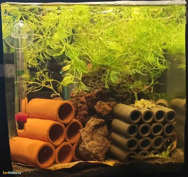 Сибиряк 85 Жалоба Опубликовано 18 января, 2022 2 часов назад, ksuxis сказал(а): У меня были раки))) очень нравились. В акве 41 литр 3 штуки.... Но по мне в 8 литров 4 много((( они между собой очень хорошо дерутся(((( Да и им фильтрация хорошая нужна все таки. Мне кажется маловата банка. Это понятно , что чем больше аквариум и чем больше площадь дна, тем лучше будет ракам, вопрос был в другом, кто имел опыт содержания рака в маленьких объемах и результаты. У меня свободный аквас 8 литров, вот и думаю как лучше сделать, и тем более ситуация поменялась, карликовых мексов больше нет в городе, но желание попробовать понаблюдать за раками - не пропало, поэтому купил 4 штуки маленьких мраморных рачка, а так как с этими пакостниками нельзя держать никакие растения, то пришла мысль соорудить какой нибудь акваскейп малого размера из кусков лавы и сделать побольше укрытий, для чего были приобретены вот такие керамические домики - фото: А из растений, будет плавать один роголистник, это и как корм для раков пойдет и растет он быстро, так что не жалко и какой никакой поглотитель нитратов. из фильтров будет стоять аэрлифт с большой мелкопористой губкой так что завтра буду колхозить из подручного материала, может что и получится Но тут появился новый вопрос: аквариум будет стоять на полке компьютерного стола на утепленном балконе (температура даже зимой в морозы не падает ниже 21 градуса) свет на лицевое стекло аквариума падает от окна, даже сейчас зимой при коротком световом дне с 11 до 15 свет падает от окна, нужно ли дополнительное освещение или хватит и этого, из растений будет только роголистник. Над аквариумом висит обычная настольная лампа со светодиодной лампочкой на 6 вт, но выключатель светильника (тумблер) выключен, хотя вилка лампы подсоединена к таймеру, куда же и подключен светильник для освещения рядом стоящего креветочника 10 л. (там настроена длительность освещения 8 часов с 13 до 21 часа) Если я включу тумблер настольной лампы, то он также будет включаться и выключаться по таймеру 8 часов с 13 до 21, но так как там мало растительности не попрут ли водороcли от такой длительности и такой мощности лампы? Что можете посоветовать? Поделиться сообщением Ссылка на сообщение