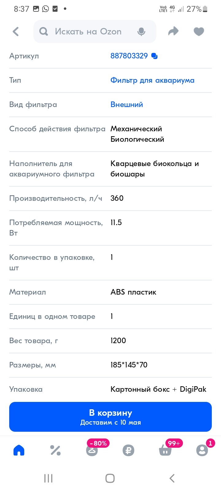 @Renev сифонка для сбора мусора с поверхности грунта вам явно не помешает, у меня в одном 180 грязными более 20 кориков и тетра 1200, воды визуально нет. В другом 15 кориков и акваэль ультрамакс 1500 тоже качество воды. Меняю 40-50 % раз в неделю везде. Тетры внешних 4 и раз в полтора два года они требуют замены адаптера кранов, это указанно в инструкции, ежегодный расходник по их мнению. Не заменишь будут капать.но несмотря на это отличные фильтры. По соотношению цена качество, по качеству пластика, по надежности защелок и очень неплохим комплектным трубкам входа выхода. Да наполнитель под замену, но даже с учетом всего перечисленного вдвое дешевле эхейма и оаза. Акваэль в эксплуатации полгода нареканий нет кроме хлипковатых трубок всаса выкида. Эхейм год шумноват немного и опять же замена наполнения.