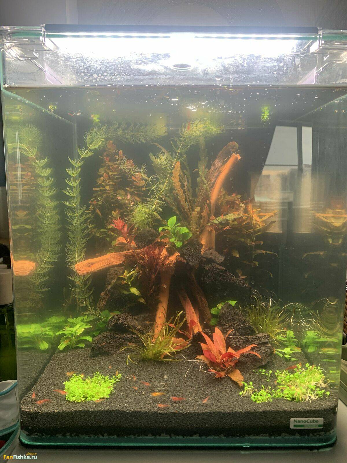 dedrnd 30 Жалоба Опубликовано 24 января, 2023 Форумчанам привет ! Ну что вот прошел почти месяц с момента запуска моего кубика. Креветки плодятся, растения растут и все хорошо. Теперь немного инфы, что было докуплено к данному набору, это наверно касается тех кто ждет что из "коробки" все будет шикарно и ничего больше не нужно докупать ! ОШИБАЕТЕСЬ!!! 1. Что касаемо света (Естественно свет который идет в комплекте совсем слабоват для данного объема) он вам подойдет только в том случае, если в нем будут искусственные растения или самые простые, но не более и немного животинки в виде неонов! В итоге отдельно был докуплен Чихирос. 2. Фильтр, опять возвращаясь к тому если у Вас в кубе будет жить пара рыб и пластиковые растения то он, наверно будет справляться и то если захотите с ним покубатурить и сделать в нем небольшую модернизацию. В итоге купил Акваэль Рюкзак FZN1 если не ошибаюсь, сделал биологический фильтр, благо остался субстракт. Теперь появилась проблема это сделать новую стеклянную крышку с вырезом под фильтр так как коты постоянно пьют воду из аквариума. 2 shkush и Demetris отреагировали на это Поделиться сообщением Ссылка на сообщение