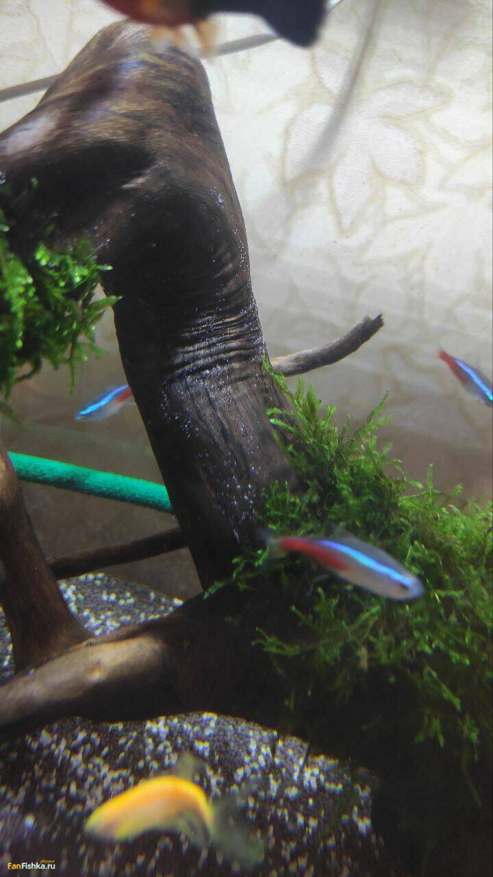 _Мария_ 1 Жалоба Опубликовано 17 января, 2023 Доброго времени суток! Заметила, что на коряге (какая конкретно коряга - не уверена...Когда покупали была светлая, долго вываривала в соленой воде) стали появляться черные точки похожие на крупу, при попытке их удалить или немного потереть корягу, появляются такие же белые крупинки. Достала корягу из аквариума, сильного неприятного запаха от нее не исходит. Промыла ее, решила обрезать мох в некоторых местах, коряга побыла на суше минут 15. После погружения ее в воду на ней стали активно появляться опять белые крупинки...Подскажите, что это может быть? Аквариум 85 литров, запущен примерно месяца 2 назад, из растений:валлиснерия, анубиас, мох, роголистник, людвигия. Подмены воды регулярные, последние недели две меняю воду чаще т.к. стали появляться зеленые пятна на стеклах. Фото белой крупы прилагаю. Поделиться сообщением Ссылка на сообщение