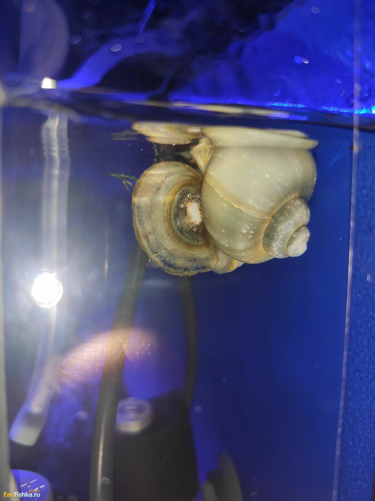 tapok_tv 0 Жалоба Опубликовано 1 февраля, 2023 1. Литраж/габариты аквариума: 100 литров 2. Когда запущен аквариум: 26.12.22 3. Параметры воды: Нитраты - 0 Нитриты - 0.01 gH - 4 kH - 10 pH - 8.2 Хлор - 0 CO2 - 2 P.S. тест полоски от Tetra. 4. Рыбы в аквариуме: 10 неонов, 2 тернеции, 4 данио, 2 анциструса (один примерно 2см. длинной, второй младше - 1.5см.), ампулярия гигантская (возраст неизвестен, купила уже большую). 5. Растения в аквариуме: криптокорина, роголистник, эхинодорус нежный, валиснерия. 6. Подкормка для растений: нет 7. Подача углекислого газа (CO2): отсутствует 8. Грунт в аквариуме: нейтральный 1.5-2мм. 9. Декорации в аквариуме: украшение в виде бревна (в поисках натуральной коряги) 10. Фильтрация: Внутренний фильтр Aquael 450л/ч. 11. Температура в аквариуме: 26-27 12. Аэрация: Круглосуточно 13. Подмена воды в аквариуме: предыдущий текст показал повышенные нитриты и нитраты, подмены по 10% каждый день, в течении 5 дней, показатели выровнялись. 14. Попадает ли прямой свет из окна в аквариум: Нет 15. Освещение в аквариуме: лампа с белым светом 10.8w barbus, и синий свет вечером 10.8w barbus. 16. Кормление: 2 раза в день, корм tetra micro crips половина мерной ложечки, tetraMin flakes. Сомы 1 раз в день таблетки tetra pleco tablets. 17. Недавние изменения: подрезала сильно выросший роголистник (лежал свернувшись на поверхности воды) и закрепила к грунту камнями. Всем привет. Ситуация следующая: ампулярия стала не активная, знаю что ей не хватает жёсткости воды (но как повысить?). Панцирь как-будто стал тоньше, крышечка закрывающаяся стала прозрачная с одной стороны. Три дня назад заселила двух анциструсов, заметила, что улитка перестала передвигаться по аквариуму и лежала свернувшись в роголистник на поверхности воды, но не придала этому особого значения. Но вчера увидела такую картину, сом что побольше присасывается к улитке, к защитной крышке и возможно он уже повредил ей её, а может и "прососал" отверстие. В центре крышки как мне кажется проглядывается светлое тельце улитки, видно, что защитная створка повреждена. Подозреваю, что из-за него улитка не активная, сидит все время свернувшись, боится. Так как дополнительного аквариума у меня пока нет, отсадила улитку в 2-ух литровую банку с водой из аквариума, она сразу присосалась к стеклу, так и сидит до сих пор. Вчера чуть-чуть поела свою таблетку, а может и нет, но вроде бы прилипала к ней. Может ли сом навредить пока ещё живой ампулярии? Как помочь улитке восстановить свой панцирь и крышечку? Хочу попробовать кормить творогом, в общий аквариум пока возвращать не собираюсь. Виновник. Жертва. Поделиться сообщением Ссылка на сообщение