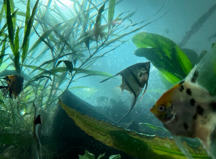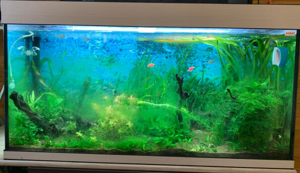 Idzumi 1797 Жалоба Опубликовано 27 марта История про комплексную борьбу с 3 видами нитки и бурых. Предыстория: Спойлер Авариум 450 литров с малавьем. Человек захотел переделать его в ленивый травник без заморочек, нашел аквариумиста на одной из площадок объявлений. Что было сделано специалистом - 1) Уложен пропант + таблетки. 2) Установлен баллон СО2 3) Выкинут штатный свет, установлено два модуля Чихирос А901 (в сумме 16к люм на высоту 55 см) 4) Высажены растения (глоссостигма, роталы, валиснерия, папоротники) 5) Клиенту выдали набор УДО и рекомендации, как и сколько лить ежедневно 6) Аквариум запущен полностью на осмосе Клиентка исправно вносила УДО по графику, носилась с баклажками собирала осмос. Аквариум постепенно обрастал, а растения стагнировали. Аквариумист рекомендовал продолжать вносить УДО и больше ничего не делать. Затем перестал отвечать на сообщения. После чего хозяйка аквариума обратилась с запросом "Почистить аквариум и вылечить рыбу". На момент первого визита весь аквариум был покрыт спирогирой и эдогониумом, растения опутаны кладофорой. Папоротники были в бороде. Рыба после высадки умирала в течение недели. Выглядело это вот так: Что было сделано (между визитами неделя): 1 визит Замер параметров (ожидаемое обнуление по всем параметрам), двухчасовая чистка зубной щеткой каждой травинки и удаление совсем запущенных очагов (коряги были полностью сгнившими, потому тоже отправились в мусорку). Подмена водопроводом трети воды (из под крана шла нормальная вода с kH 6, было решено отказаться от осмоса и перейти полностью на водопровод, т.к. еженедельные подмены осмосом выматывали владельцев аквариума). Выключен баллон с газом, выключен свет. На неделю ежедневное внесение глутарки в лечебной дозе (я брала биоуглерод от аквабаланса, он менее агрессивно ведет себя по отношению к валиснериям и прочим истинно водным). 2 визит Снова зубная щетка, тщательная чистка и сифонка всего, что отмерло, подмена 50% воды. Включен баллон. Включен 1 чих на 70% мощности с разрывом на пару часов (12:00-15:00, 17:00-20:00). Откорректирована подача УДО, начали лить УДО. Продолжили лить биоуглерод. 3 визит Повторная чистка всего, перетряхнули растения - что-то добавили (в основном быстрорастущее), что-то убрали, переклеили фон, увеличили подачу света до полутора чихов и соответственно увеличили подачу УДО. Биоглерод продолжали лить уже в терапевтической дозе (и лили его до тех пор, пока не кончилась бутылка 1л). На этом этапе аквариум уже стал полностью чистым (суммарно это заняло 3-4 недели).но в аквариуме толком не приживалась рыба - оодиниоз. Так как лечение оодиниоза бьет по траве, было решено не использовать препараты. Поставлен оксидатор, на месяц был поставлен УФ стерилизатор, аквариум затемнен на пару недель. Спустя месяц было высажено довольно большое количество рыбы (скалярии, неоны, вишневые барбусы, аманки, сайки). Все живы, здоровы. Спустя полгода баллон кончился, больше его пополнять не стали. Аквариум живет на подменах водопроводом раз в 2-3 недели и подаче УДО раз в неделю. Свет с 14 до 22. Happy End. 7 Поделиться сообщением Ссылка на сообщение