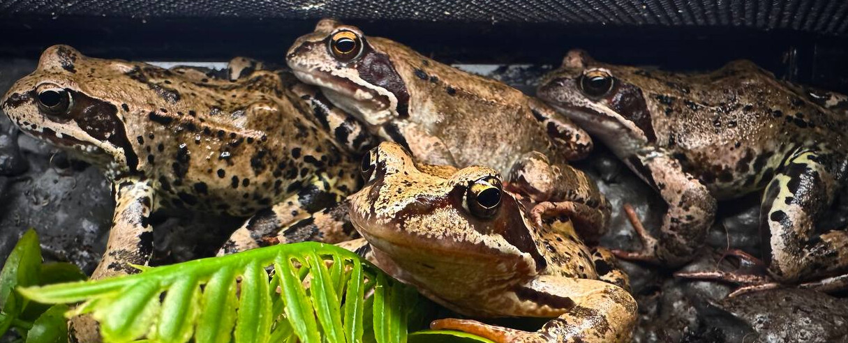 Idzumi 1782 Жалоба Опубликовано 30 апреля Когда хочется очень бюджетный акватеррариум, можно просто сходить на соседнее болото и набрать самых обычных лягух. Вашему вниманию травяные лягушки, собранные в природе. Выглядят так, будто скоро выпустят свой рэп альбом Так как под рукой особо ничего не было, только небольшая старая банка 30х30х45, баллончик пены и пара коряг, то, как говорится, "слепила из того, что было". В плане содержания довольно неприхотливые гады, кормлю раз в неделю туркменами или сверчками, пытаюсь перевести на заморозку, но пока успех 50/50 (это когда две едят заморозку, а две - воротят нос). Из-за того что бюджетом нормальный свет не предусмотрен, а банановый сверчок бодро хрустит любой растительностью в банке, от живых растений пришлось пока отказаться. Им бы водоемчик побольше конечно... но пока вроде и этого хватает, не жалуются. Даже головастиков вывели. 5 1 2 Ника, Камень, AlexLi и 5 люди отреагировали на это Поделиться сообщением Ссылка на сообщение