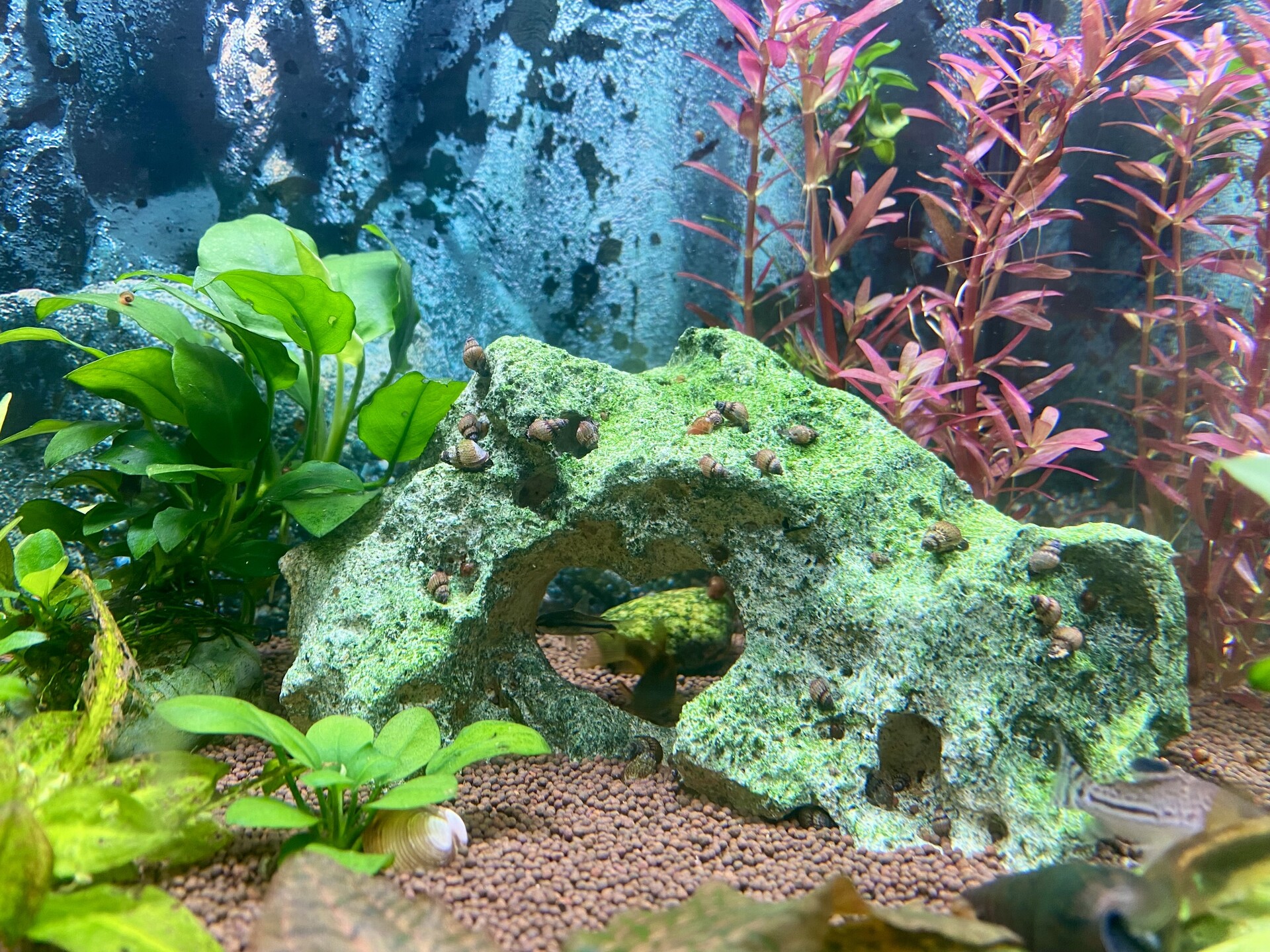 Taty 185 Жалоба Опубликовано 28 июня Всем привет! Не было возможности и времени сидеть на форуме, но аквариумы продолжают жить, несмотря на это. 1- сомовник, с коридорасами - Голд страйп, Венесуэла оранж, пигмеи и один Джули. Он же улиточник, потому что только в нем они выживают, - неретина, шип дьявола, катушки и мелании. 2- кубик, с петушком, галактиками. В планах отоцинклюс, но их пока не найти в продаже уже несколько месяцев. 2- большой, как я его называю. Сайки два, севильи два, рамирези - тоже два) Написать пост решила от непонимания и безысходности, потому что проблема не один год существует. Прошу совета) В большом процветают водоросли! Был эдик- с ним справились за два дня водорослееды, оставлены на постоянку как профилактика. Вырастут - заменю их на маленьких снова. Но вопрос с сине-зелеными, с ксеном на растениях и с зеленым надутом на стеклах они не помогут, нужны улитки. Улиткам тут не выжить, ни хелены, ни катушки больше трех-пяти дней не держатся. Химия не помогает - сайдекс и альгицид акваер. Сделала тесты: GH 5, PH 7, нитрат 5, фосфат ~0,1 Нилпа. Азотистые, нитрит по нулям. Несколько ночей читала форум, дневники) пыталась состыковать в голове информацию и применить к себе. Сделала вывод, что ксен из-за низкого фосфата. Но его пропорция с нитратом вроде неплохая? Или этого все равно мало, несмотря на пропорции? Купила аквабаланс фосфат, нитрат - если нужно подкорректировать. Но нужно ли? Помогите) Для сравнения параметры воды в других аквариумах: Петушок: Gh6, Ph6, нитрат 10, фосфат 2. Сомики: Gh8, Ph7, нитрат 20, фосфат 2-2,5. У сомиков ни водорослинки! У петушка немного зеленеют стекла и легкий эдик, но подселяемые катушки и кочующий водорослеед решают проблему. Влияние длительности освещения не думаю, что особо большое, свечу 6 часов, свет барбус ну не сильно мощный, не профессиональный. 1 Камень отреагировали на это Поделиться сообщением Ссылка на сообщение