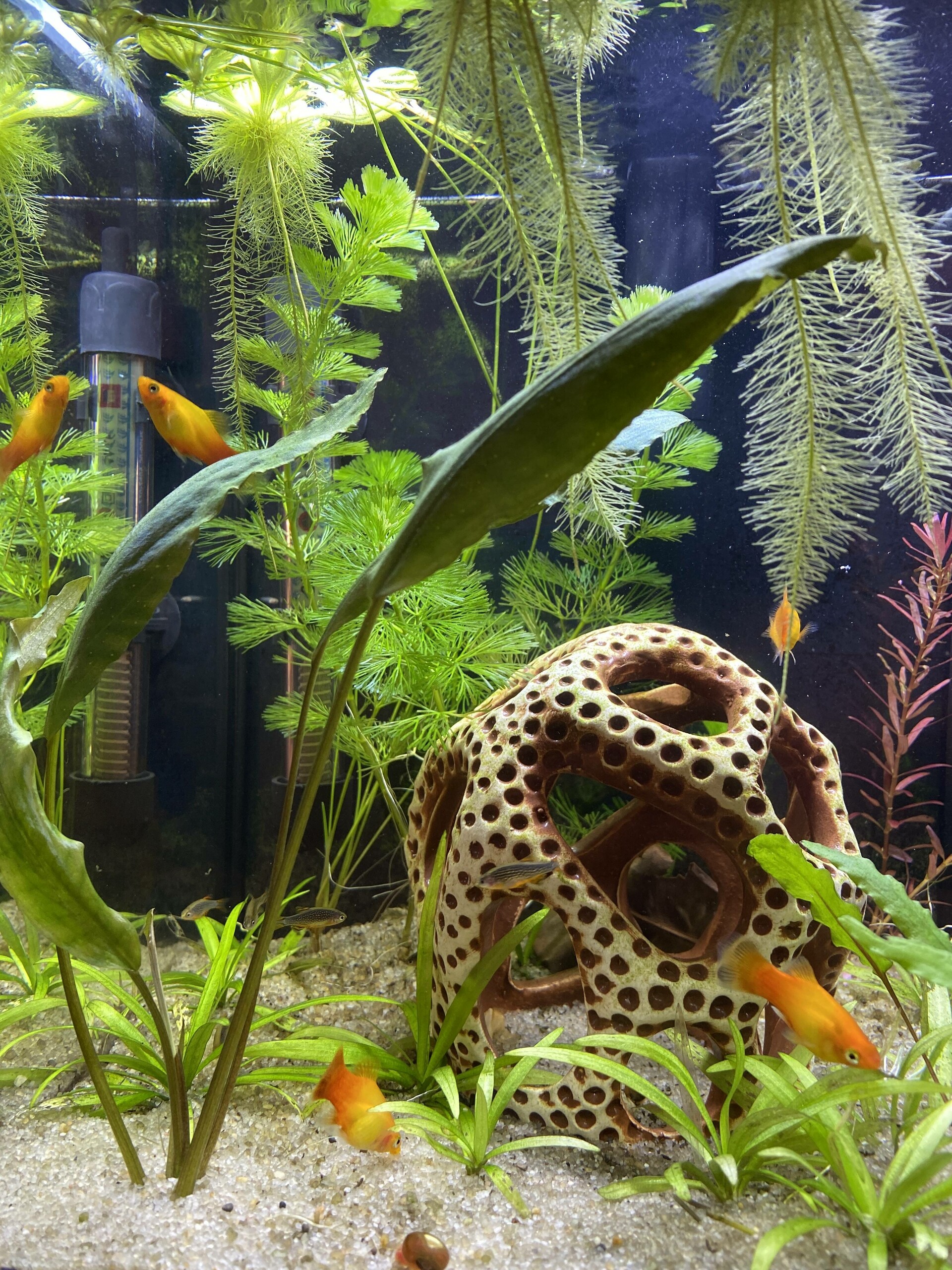 Taty 185 Жалоба Опубликовано 22 июля Радостная новость, сегодня подменивая воду в кубике обнаружила плавающие глазки? штучек 6 мальков галактик. Когда кто-то не умирает, а рождается, это вселяет оптимизм и надежду? Петушок помер, всю свою жизнь у меня он просидел на дне в одном месте, изредка шевелясь и игнорируя еду. Так и помер - меняю воду, а он не шевелится) внешне абсолютно красив??♀️ может он в стаканчике жить один хотел, а тут хоромы и соседи) Потихоньку засаживаю кубик растениями) сейчас мне красиво и уютно? жду коробочку с Аммании) С петушками опять завязываю)) посмотрела видео ВК, он там про пецилий сансет рассказывал и показывал… поехала к нему в Экзоменю и купила две пары вместо петуха) красииивыеее? ну пугливые - потому кормлю их усиленно и погурманистее, чтоб почувствовали себя как дома скорее) теперь переживаю за мальков галактик, в рот пецилиям они пролезут, к родителям - нет, пока сколько смотрела, охоты на них не заметила, проплывают мимо, ищут корм. Вот такие дела) 5 Пятница, Gala17, Nevidimka и 2 люди отреагировали на это Поделиться сообщением Ссылка на сообщение