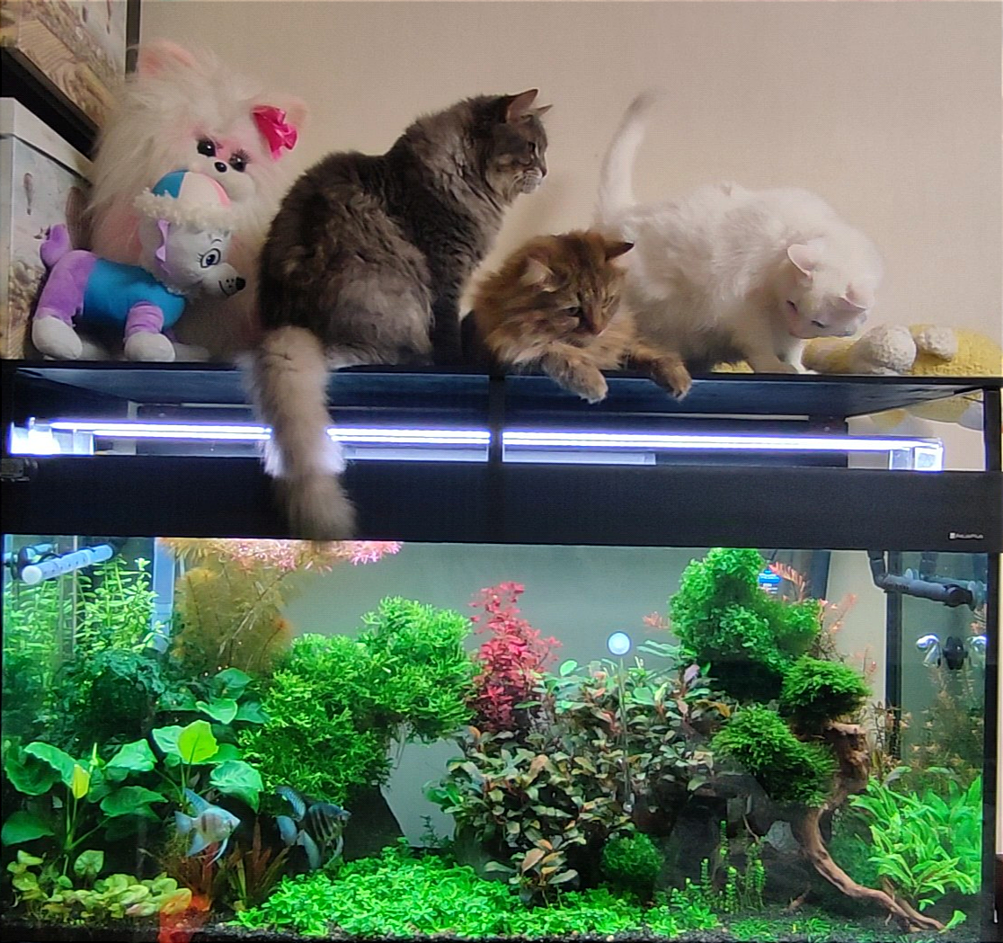 AnaAna 6062 Жалоба Опубликовано 1 января 2 часов назад, Ника сказал(а): полка над аквариумом специально для котов сделана, да ? )) @Ника да, это был компромисс между крышкой и открытым аквасом от рыжего, чтобы он туда не нырял) Вообще, обычно только он там тусит постоянно, ну изредка двое других могут поспать, но сегодня что-то у них аншлаг был Поделиться сообщением Ссылка на сообщение