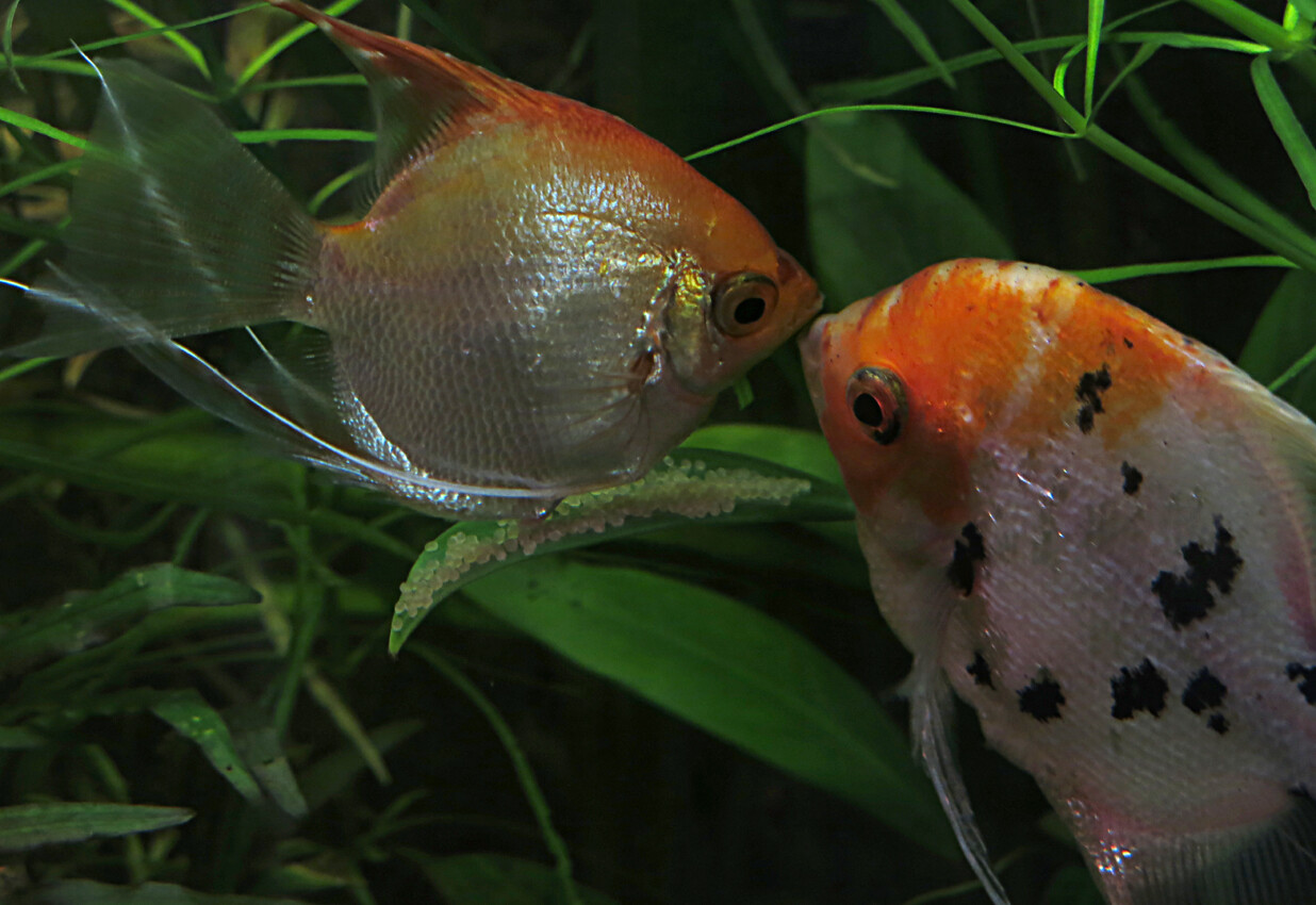 Камень 2793 Жалоба Опубликовано 12 июня В 26.05.2025 - 14:57, Marsianka сказал(а): Похоже это пара, слева самка, справа самец. И икра их была. Приглядывай за ними. Скалярии перед нерестом готовят место - чистят небольшой участок стекла или крупный жесткий лист. После нереста, как писала @Ника - ухаживают за икрой и отгоняют других рыб от кладки. В общем аквариуме у икры шансов нет (нужен отдельный пустой аквариум с очень чистой водой и сильной аэрацией). В течении одного-двух дней, в общем аквариуме, икра портится и родители ее съедают. Жаль, что пропустила сам нерест - интересное зрелище. Теперь жди следующего. Могут и на лист отнереститься. 8 Nevidimka, Аннуshка, AnaAna и 5 люди отреагировали на это Поделиться сообщением Ссылка на сообщение
