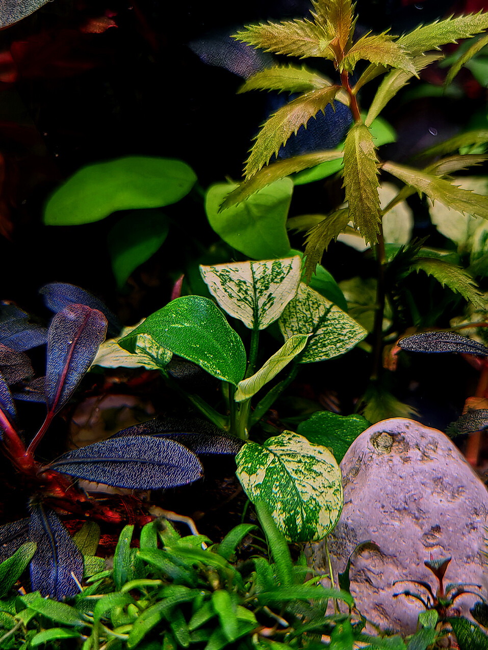 Камень 2793 Жалоба Опубликовано 24 сентября Фото дня. 36л/2, СО2, свет RGB+UV, В центре Anubias barteri var. nana "Pinto", у которго почти раскрылся новый лист. Белый! Слева от него два куста Bucephalandra sp. "Black Rose", которые на вчерашнем фото. Справа (между двумя белыми камнями) Bucephalandra sp. "Flamingo". 5 AnaAna, shkush, Nevidimka и 2 люди отреагировали на это Поделиться сообщением Ссылка на сообщение