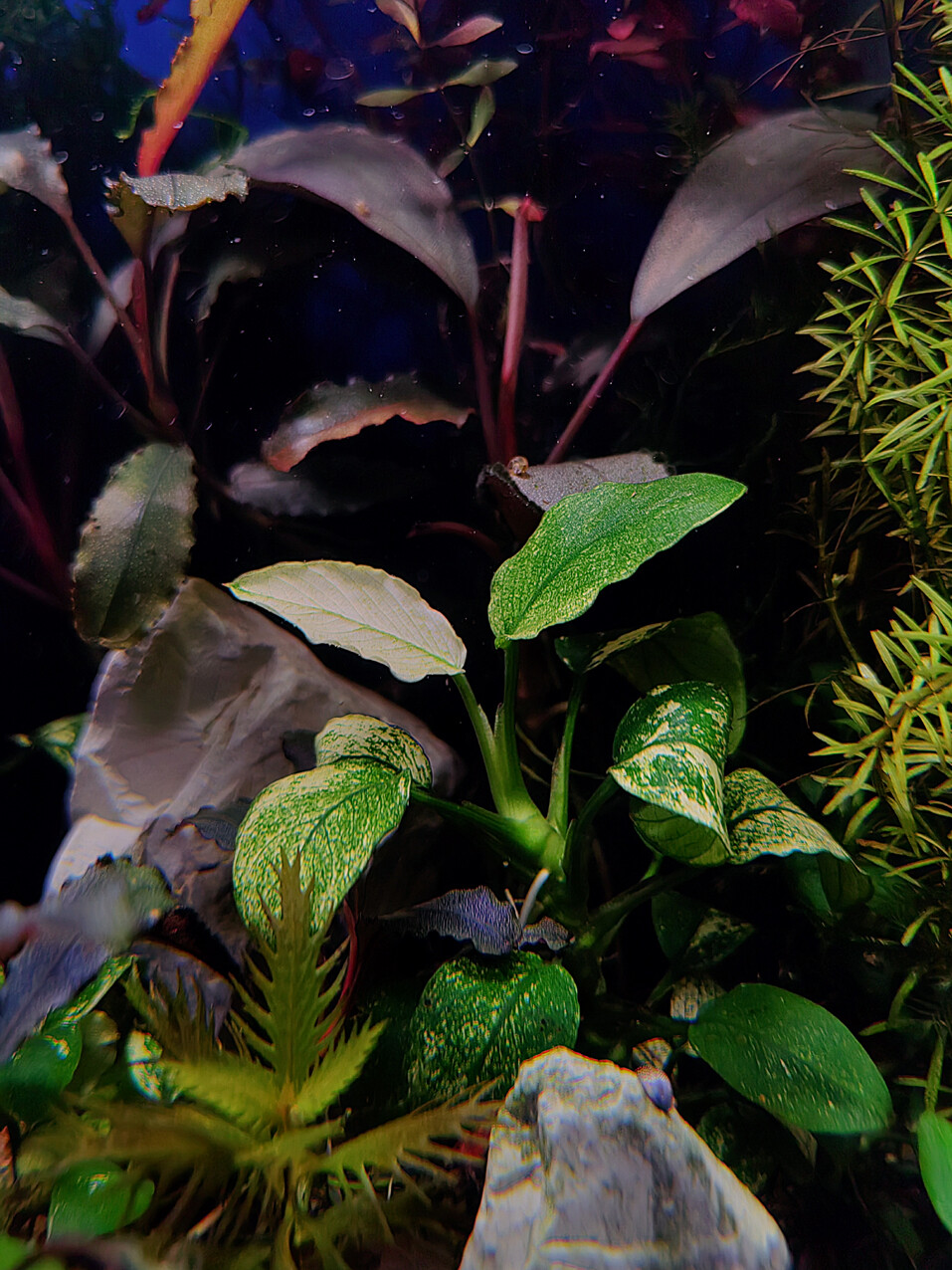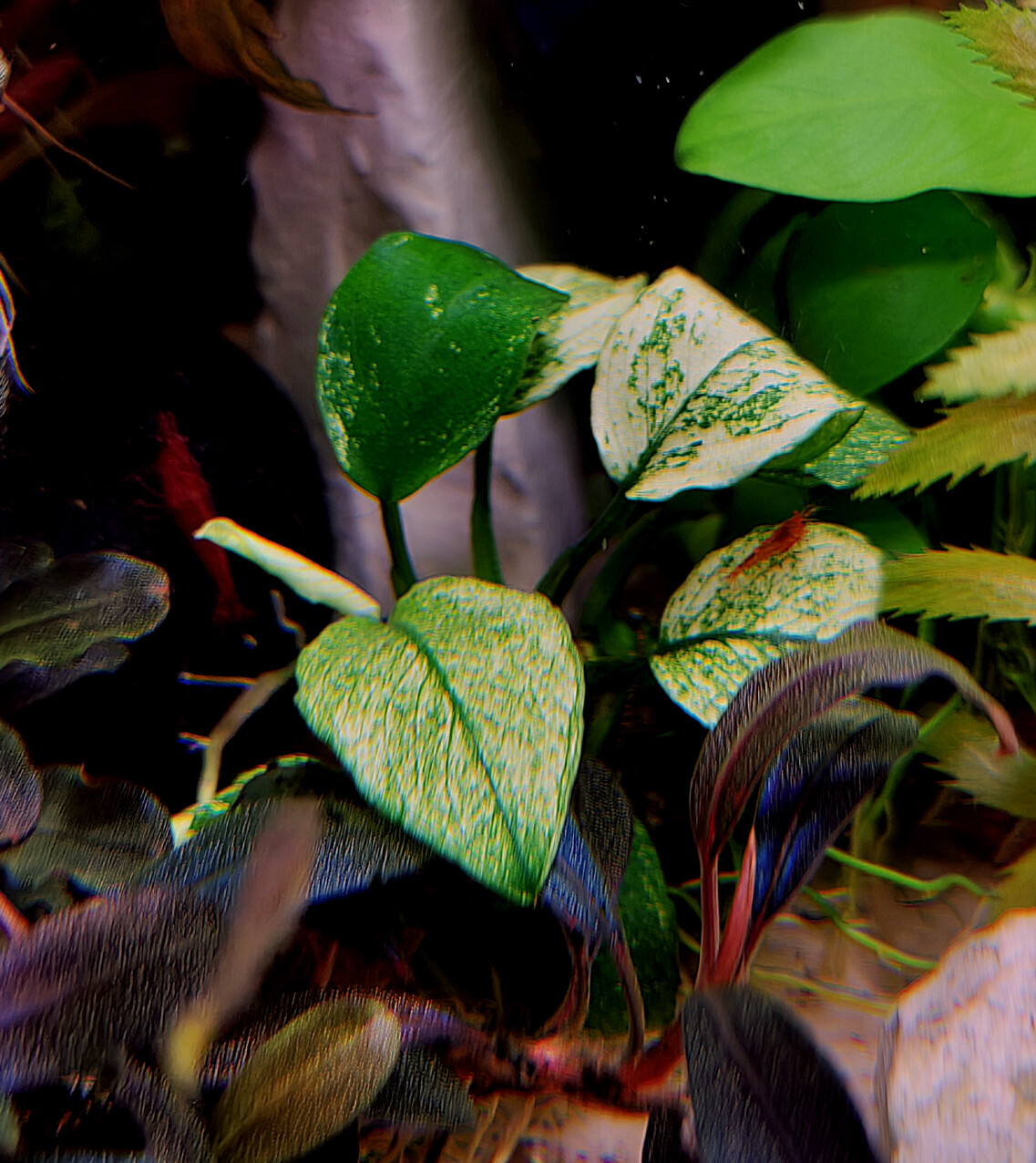 Камень 2793 Жалоба Опубликовано 6 октября Хроники Anubias barteri var. nana "Pinto". 36л/2, СО2, RGB+UV, Пинто, который выпускал лист "не рыба, не мясо" (и этот лист позеленел со временем), раскрыл новый лист - полностью белый, только жилки еле-еле светло-зеленые. Фото 21,09,25 и сегодня: - Пинто, который раскрывал зеленый лист, потом белый с зеленцой, вылустил новую листовую стрелку. Сейчас последние три листа у него совсем разные, посмотрим какой будет четвертый. Предполагаю будет белый, как у предыдущего ануба. Фото 20,09,25 и сегодня: Получается скорость роста примерно - один лист за две недели. - Новорожденные Пинты из старой ризомы раскрыли свои первые листики. Абсолютно белые, даже жилки прозрачные. Хотят быть Вайтами . Наверное жилки позеленеют со временем. Фото 22,09,25 и сегодня: Последнее время никаких изменений не производил: мощность света и концентрация удобрений те же. Только концентрацию СО2 добавил 12,09,25. И Пинто, на увеличение СО2, отреагировали побелением листьев. Такие вот, простые на первый взгляд анубиасики, но если понаблюдать, то очень интересные и разнообразные. Ксати вопрос: Почему у анубов скручиваются старые листья (на фотках хорошо видно)? 5 AnaAna, shkush, Nevidimka и 2 люди отреагировали на это Поделиться сообщением Ссылка на сообщение