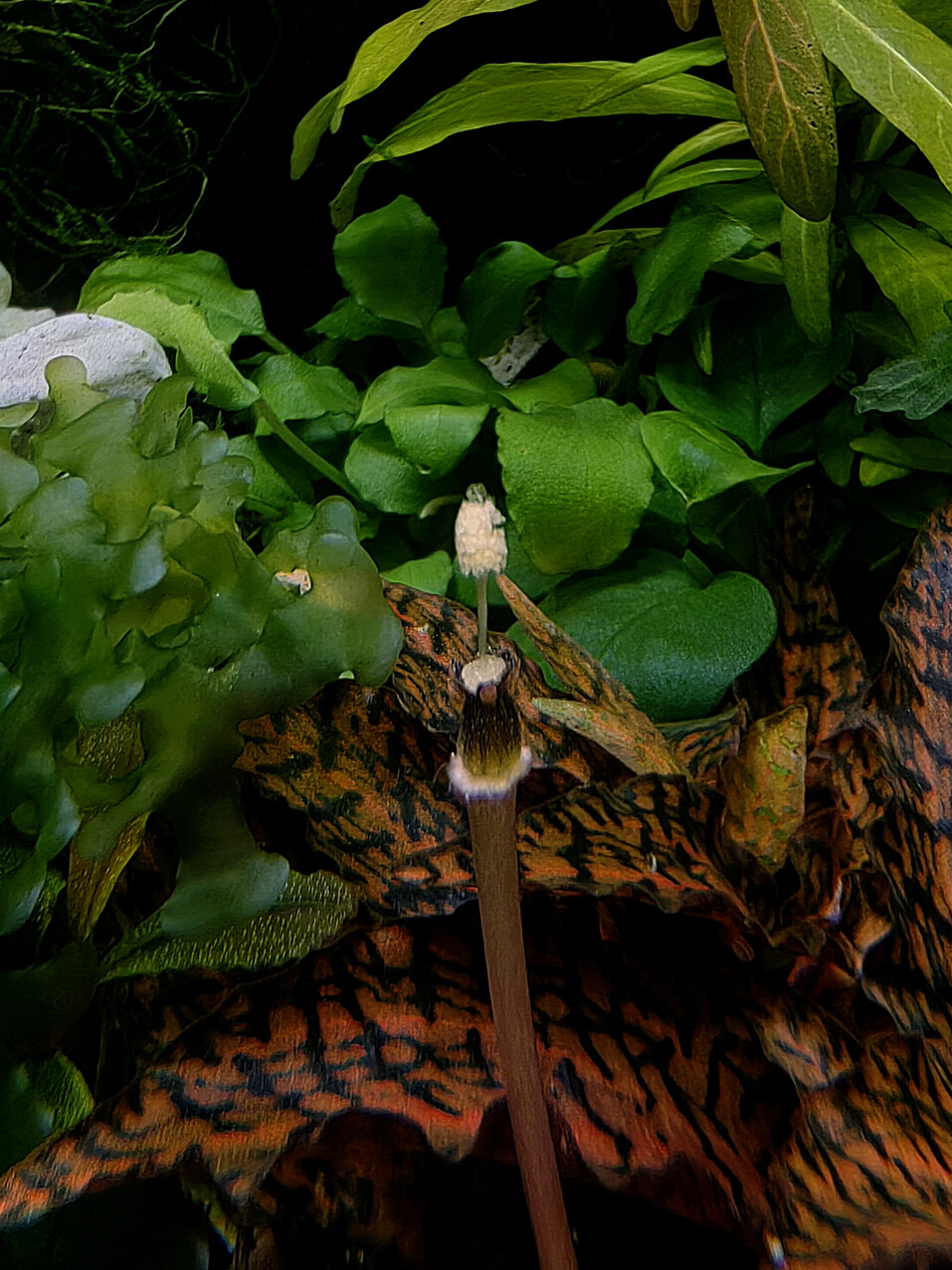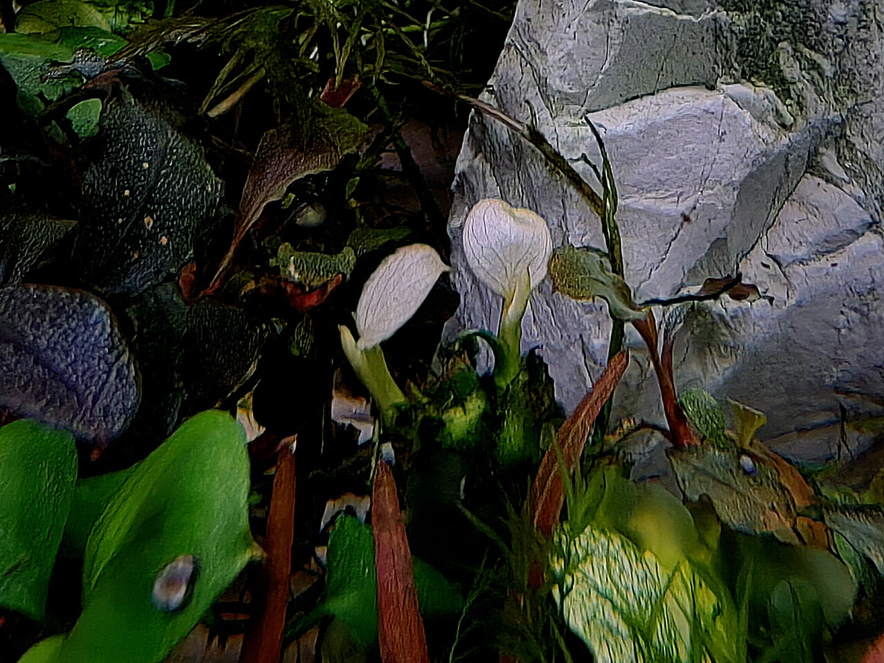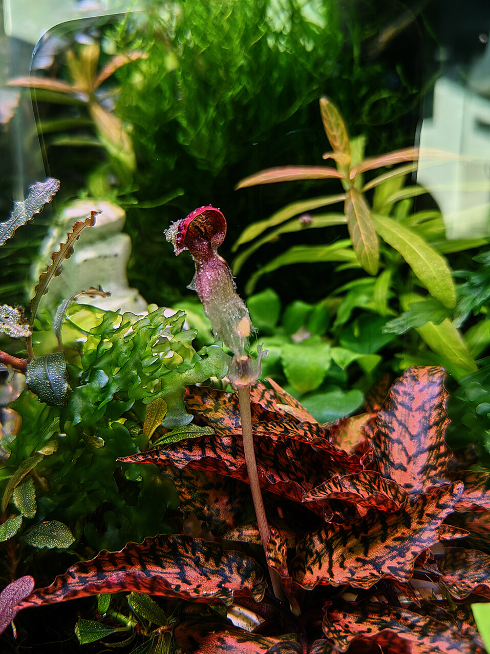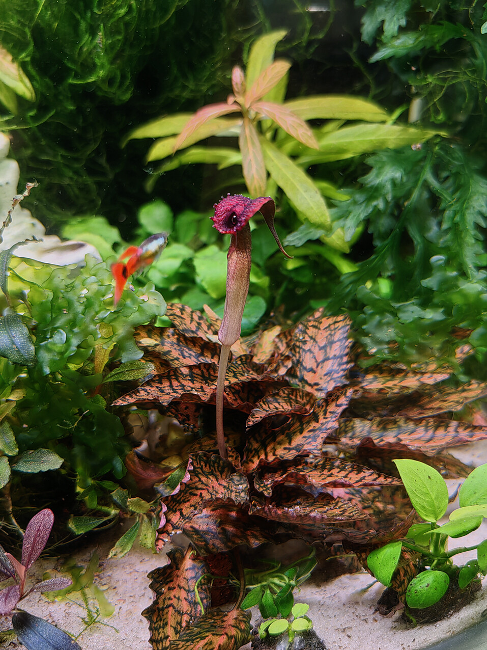 Камень 2793 Жалоба Опубликовано 12 октября Сижу вчера вечером, любуюсь 36 литровкой, которая с СО2. А рядом стоит 28л, который я прошлую неделю особо внимательно не разглядывал. Перевожу на него взгляд, замечаю что-то странное, фокусируюсь и ... Я чуть айкос не проглатил! Не помню, чтобы раньше у меня цвели криптокорины. Не знаю, когда эта "цапля" тут уселась, но жалею, что пропустил выход стрелки с бутоном. Говорят в воде не раскроется? Cryptocoryne nurii "Rosen Maiden". 28л, без СО2, RGB+UV 6 1 Tmouse, Grolf, AlexLi и 4 люди отреагировали на это Поделиться сообщением Ссылка на сообщение