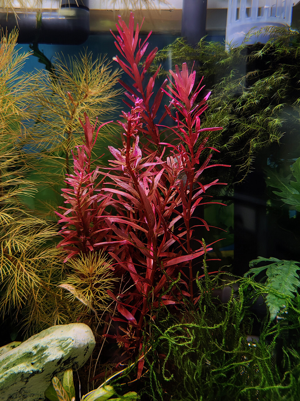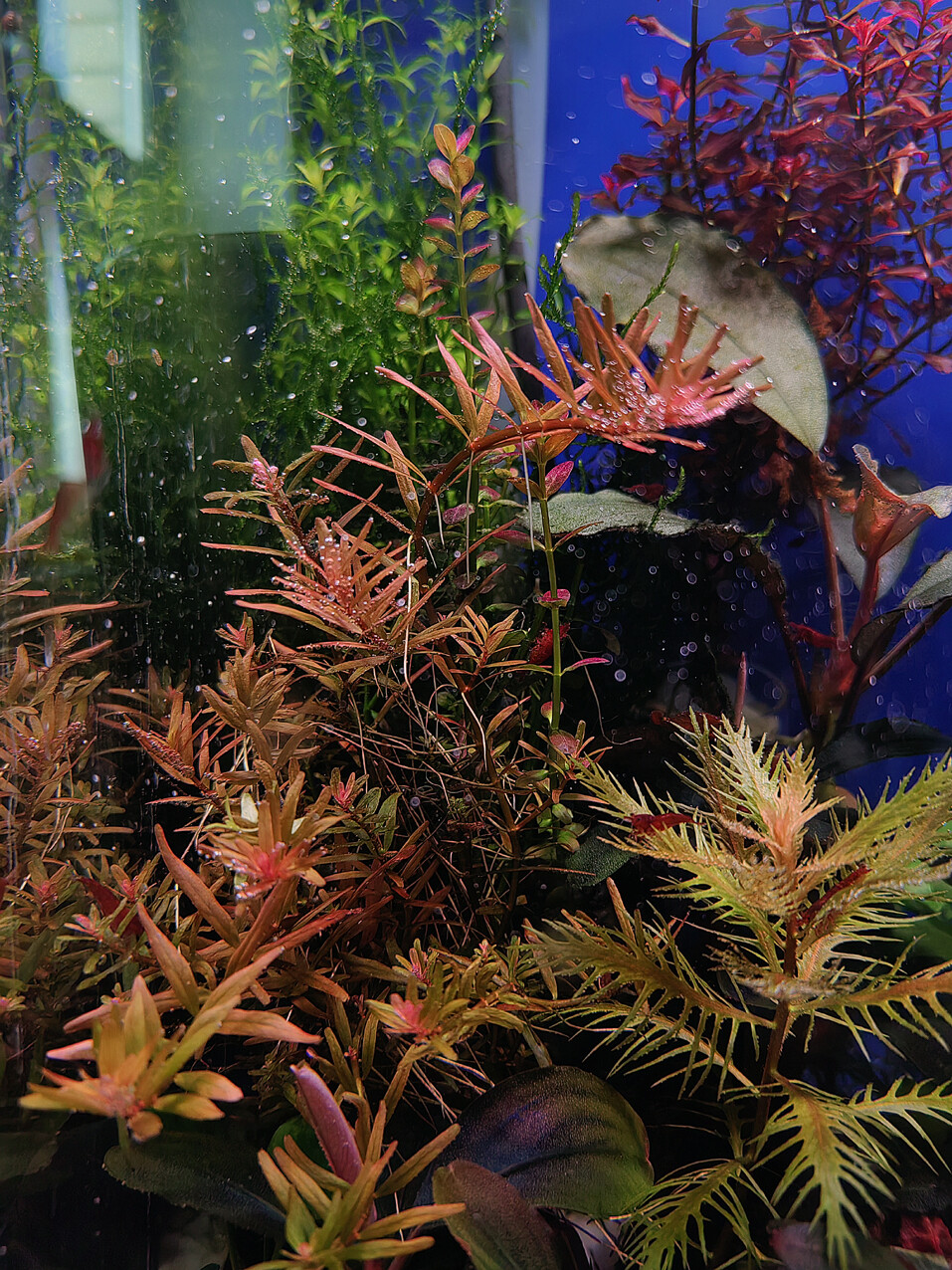Камень 2991 Жалоба Опубликовано 11 января В 02.12.2025 - 23:40, Камень сказал(а): Роталу Хра (Rotala rotundifolia H'Ra) и роталу "Красная кровь" (Rotala rotundifolia "Blood Red"). Поселил в аквариумы с газом и без. Ротала Хра в аквариуме с газом нормально прижилась, растет, уже два месяца. Rotala rotundifolia H'Ra, 36л/2, СО2, свет RGB+UV. - В аквариуме без газа ротала Хра не прижилась, плохо растет, листья чернеют, убрал. Rotala rotundifolia H'Ra, 28л, без СО2, свет RGB+UV. - А ротала Blood Red в этом же аквариуме, без СО2 хорошо себя чувствует. Приехала ко мне из аквариума с подачей СО2 и заселилась в кубики с газом и без, как к себе домой. Уже больше месяца, ни намека на адаптацию не увидел, как будто всегда здесь росла. Вот интересно, вроде они сёстры, ротундифолии. Но Хра капризная, требовательная, СО2 ей подавай, и растет не прямо вверх, а наклоняется к грунту. А Блад ред простая, яркая, даже без газа и растет ровно вверх. Кстати, обе растут не очень быстро, что удобно для травника. Rotala rotundifolia "Blood Red", 28л, без СО2, свет RGB+UV. 9 Поделиться сообщением Ссылка на сообщение