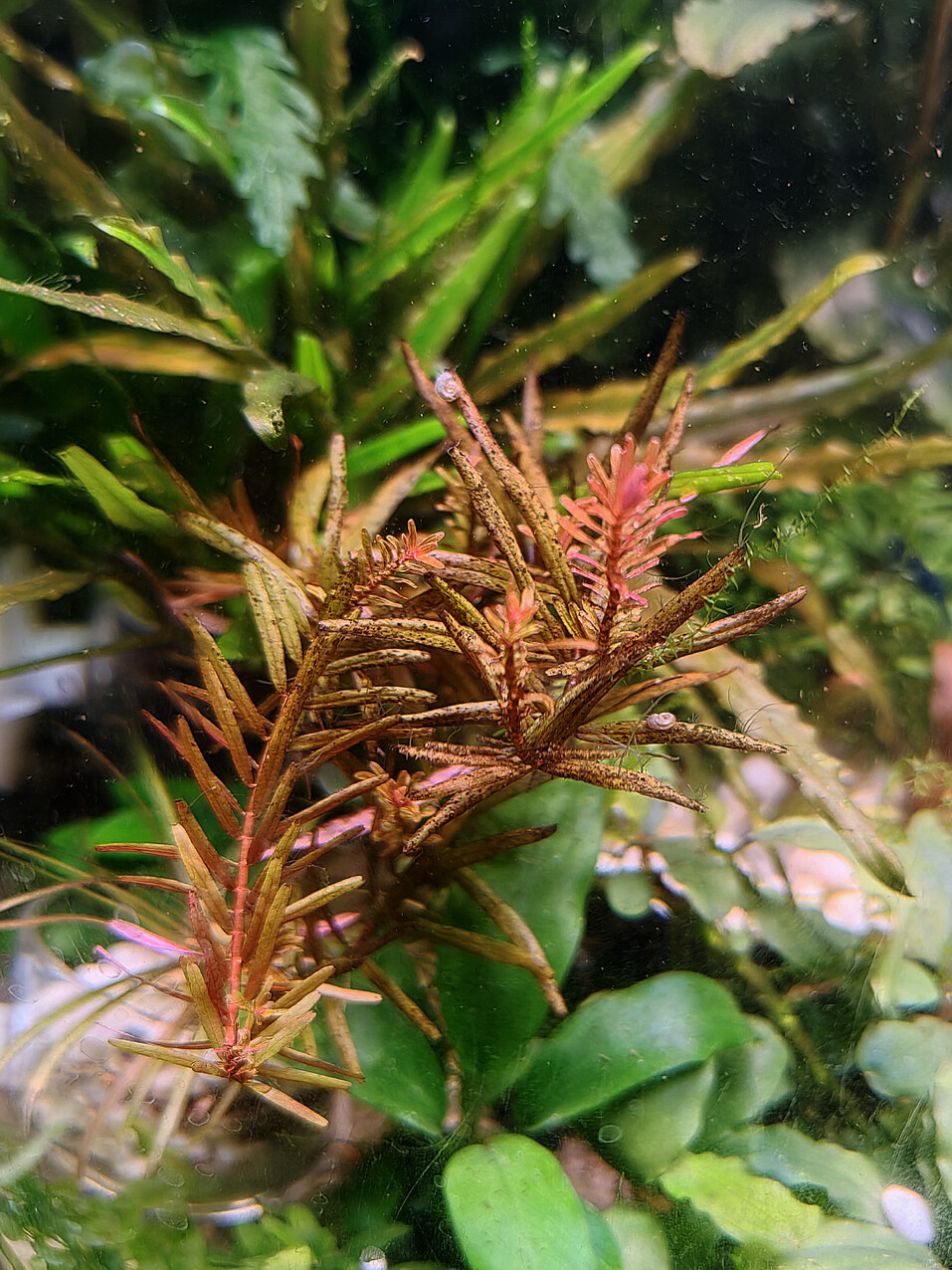 Камень 2991 Жалоба Опубликовано 2 декабря, 2025 Выпросил себе Роталу Хра (Rotala rotundifolia H'Ra) , на фото слева и роталу "Красная кровь" (Rotala rotundifolia "Blood Red")., на фото справа. Поселил в аквариумы с газом и без. Хра уже три недели, адаптируется, начинает краснеть немного. Блад ред всего три дня, пока яркая красно-розовая. Аквариум 28л без СО2, свет RGB+UV 13 Поделиться сообщением Ссылка на сообщение