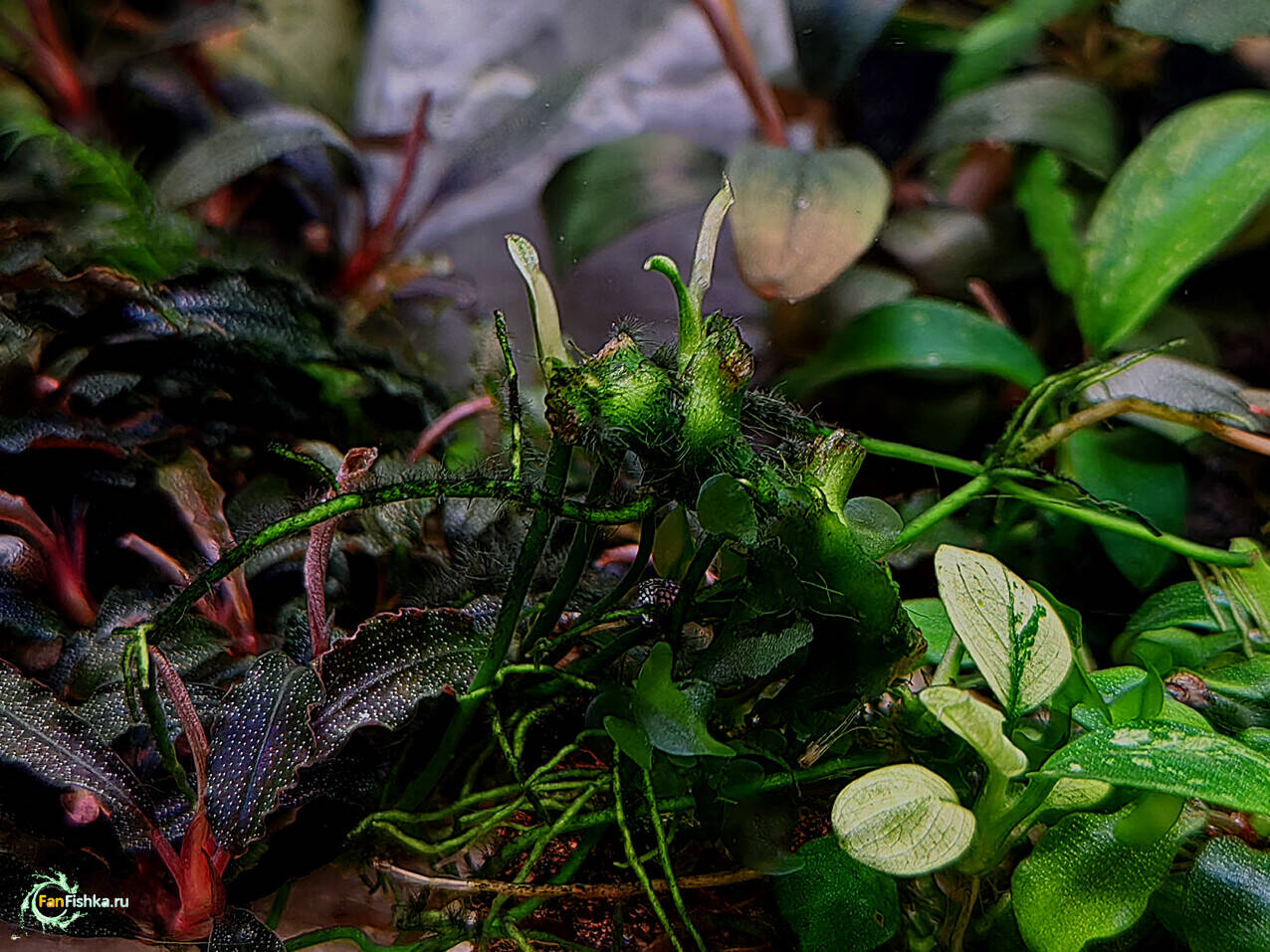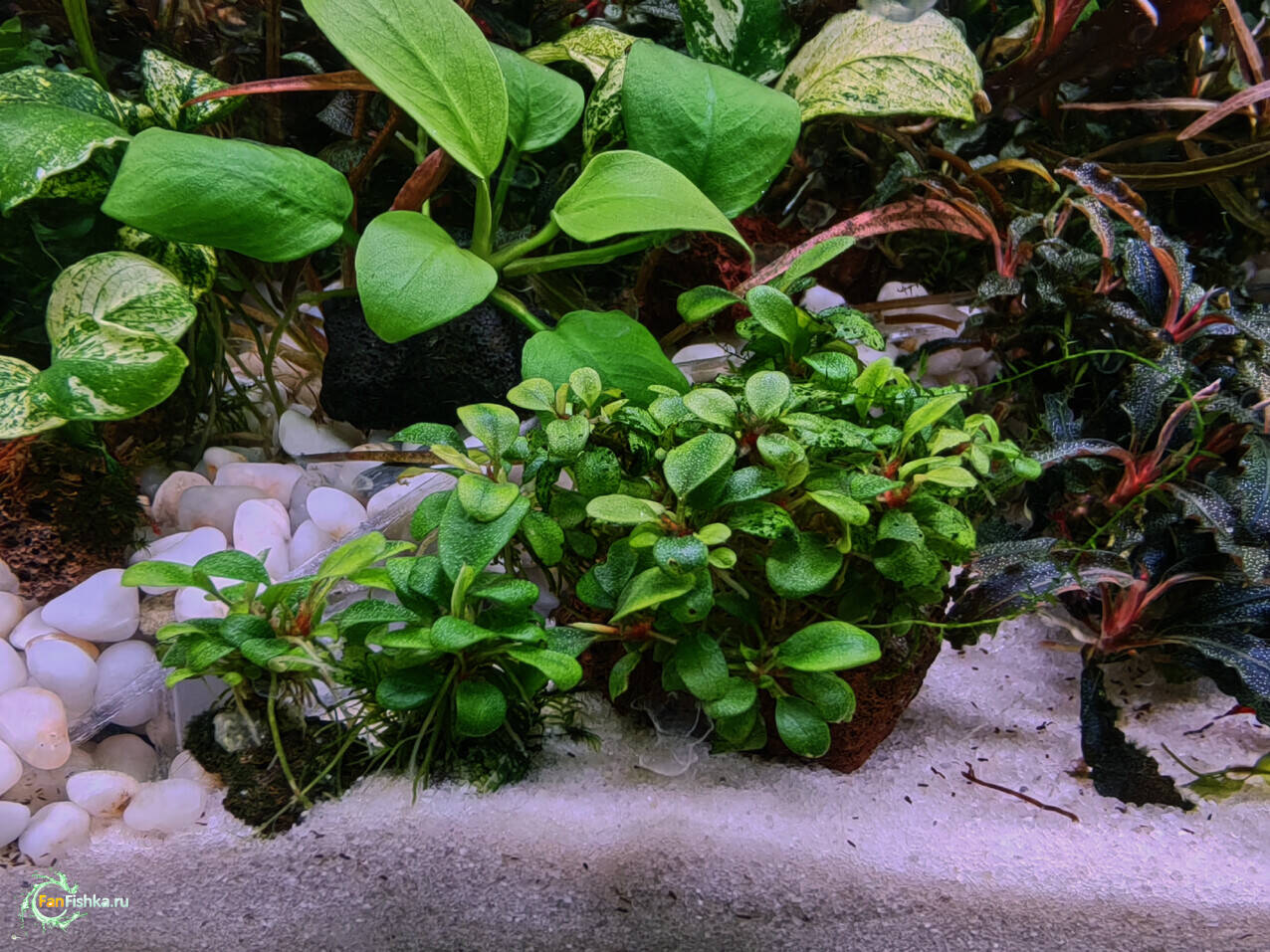 Камень 2991 Жалоба Опубликовано 28 января @AlexLi Изначально ветку анубиаса креплю к куску лавы нитками (редко клеем). По мере роста появляются новые листья, ризома вытягивается, старые листья портятся - их обрезаю. Anubias barteri var. nana "Gold" Когда стебель (ризома) вытянется над лавой в 1,5-2 раза, ее можно обрезать и привязать к новому куску лавы. Старую ризому оставляю привязанной к старой лаве, но срезаю с нее все черенки с листьями. На ней, из спящих почек начнут расти новые ветки. Anubias barteri var. nana "Pinto" Это про анубиасы и буцефаландры, которые не сильно кустятся. Многие буцки и некоторые анубы (петит, панголино) сами по себе дают много боковых побегов. Там все просто, обрезаю сильно торчащую ветку (несколько веток) и креплю ее (их) к новой лаве. Bucephalandra sp. "Tumbang Kelaken" PS: Потом все это перестает помещаться в аквариуме 6 2 Поделиться сообщением Ссылка на сообщение