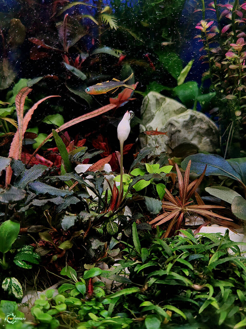 Камень 2991 Жалоба Опубликовано 29 января Фото дня. Bucephalandra sp. "Brownie Ghost" с бутоном, Pseudomugil furcatus - Попондетта фруката, Boraras brigittae - Расбора Бригитта, ( 36л/2, СО2, RGB+UV). 6 1 Поделиться сообщением Ссылка на сообщение