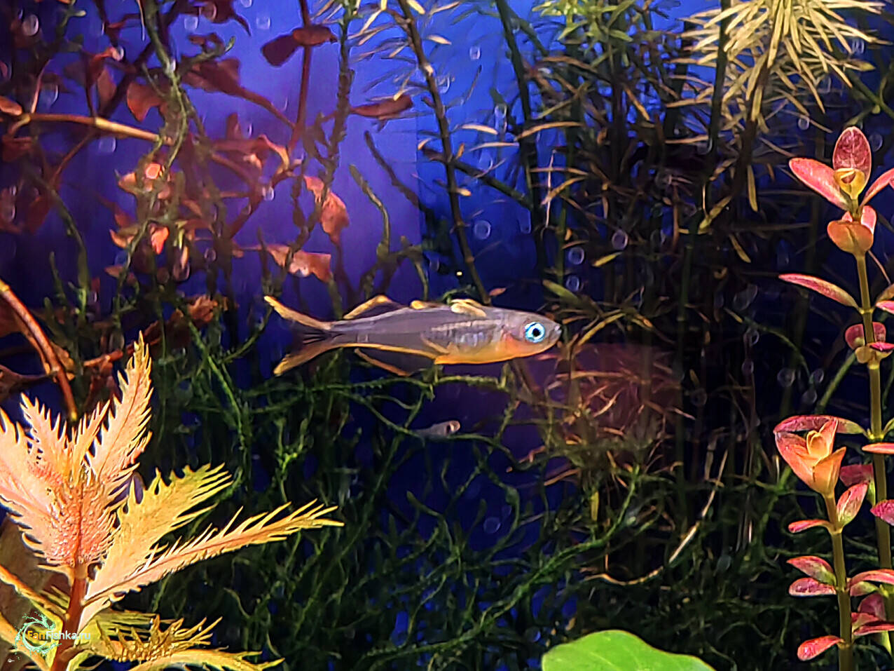AnaAna 6387 Жалоба Опубликовано 24 января 6 часов назад, Камень сказал(а): Аквариум 36л/2, 38х28х37 -ДхШхВ. СО2, RGB+UV Фильтр: Sunsun LW 602B, внешний 6Вт, 400 л/час - заявленная (по факту 210 л/час) и навесной мини-самп ZHIYANG AF380, 3w. Свет: Week Aqua M300 Pro - К, 25w, 1500Lm. Режим "Red", в пике 50% мощности. Световой день с 8:30 до 13:40 и с 17:40 до 21:40. СО2: реактор на соде и лимонной кислоте, 40-50 пуз/мин, 14,5 часов. Нагреватель не использую. Компрессор не использую. Грунт. 65% площади дна - Жемчужная галька 2-6 мм, высота 4 см. 35% площади дна - Кварцевый песок 0,4-0,6 мм, Высота 2 см. Вода: водопровод+осмос 1:7, плюс рем "Нилпа GH+". Подмена 12л раз в неделю. Параметры воды: kH 2-3; pH 6,5-6,7; gH 9-11. Температура 22-25С зимой; 24-27С летом. Удобрения: Aquabalance Premium Макро NPK, NK, PK. плюс Aquaerus Калий. Aquaerus Микро, плюс Aquaerus Железо. Витамины: Aquaerus, йодинол. Удобрения вношу один раз в неделю, после подмены , из расчета на весь обьем: Азот 12 мг/л, Фосфат 0,8 мг/л, Калий 6 мг/л, Железо 0,12 мг/л. Животные: Poecilia reticulata "Dumbo Red Tail" - гуппи "Дамбо красный хвост" - несколько. Boraras brigittae - Расбора Бригитта (Расбора-комар) - было 12 Pseudomugil furcatus - Попондетта фруката - было 10 Neocaridina davidi "Bloody Mary" - Креветка "Кровавая Мэри" - много. Caridina japonica - Креветка Амано - было 4 шт. Улитки: катушки, физы, меланьи. Растения: Анубиасы: Anubias barteri var. nana "Gold", Anubias barteri var. nana "Pinto", Anubias barteri var. nana "Petite" Anubias barteri var. nana "Pangolino", Anubias barteri var. nana "Round Leaf". Буцефаландры: Bucephalandra sp. "Brownie Ghost", Bucephalandra sp. "Kualakuayan-1", Bucephalandra sp. "Kedagang", Bucephalandra sp. "Tumbang Kelaken", Bucephalandra sp. "Godzilla", Bucephalandra sp. "Flamingo", Bucephalandra sp. "Black Rose", Bucephalandra sp. "Super Blue Type Round", Bucephalandra sp. "Theia silver", Bucephalandra sp. "Brownie Phoenix", Bucephalandra sp. "Brownie Purple", Bucephalandra sp. неопознанная "желто-сине-зеленая/персиковая". Schismatoglottis roseospatha, Schismatoglottis prietoi, Cryptocoryne parva, Cryptocoryne spiralis "Tiger". Длинностебельные: Hemianthus micranthemoides - Хемиантус малоцветковый, Proserpinaca palustris - Прозерпинака болотная, Alternanthera reineckii Rosanervig - Альтернантера розанервиг, Ludwigia palustris Super red - Людвигия супер рэд, Hygrophila lancea "Araguaia" - Гигрофила Арагвайа, Hygrophila pinnatifida - Гигрофила Пиннантифида, Rotala wallichii sp. Bangladesh - Ротала Бангладеш, Rotala ramosior "Florida" - Ротала Флорида, Rotala rotundifolia H'Ra - Ротала Хра. Мхи: Taxiphyllum sp - Flame Moss - мох пламя Fissidens cf. fontanus Grande - Octodiceras fontanum - мох фонтан (большой феникс) Папоротники: Bolbitis heudelotii mini - Болбитис Геделоти мини (конголезский папоротник). Lomariopsis lineata - заростк папоротника Ломариопсис. Плавающие: Pistia stratiotes- Пистия, Limnobium stoloniferum - Лимнобиум, Salvinia natans - Сальвиния, Phyllanthus fluitans - Филлантус. На новогодних праздниках поменял грунт. Вместо кварцевой пыли взял кварцевый песок с фракцией 0,4-0,6 мм. Песком засыпал правый ближний угол, примерно 35% площади дна. Остальную площадь засыпал жемчужной галькой 2-6 мм. Часть гальки взял из действующего аквариума, запущенного в апреле прошлого года и часть свежей досыпал. Из-за большой плотности посадки, фактуры дна не видно, еще буду работать над дизайном в сторону уменьшения количества растений. В конце прошлого года понизил кН подменной воды. Раньше мешал осмос с водопроводом в пропорции 3:1, кН был 4. Теперь мешаю 7:1, кН 2. Для повышения gH, в подменную воду добавляю реминерализатор "Нилпа GH+" Обитатели аквариума чувствуют себя хорошо, грунт "настаивается", водорослей нет, кроме немного вьетнамки. Boraras brigittae - Расбора Бригитта (Расбора-комар) - Pseudomugil furcatus - Попондетта фруката (самец). Как всегда бесподобно! 2 1 Поделиться сообщением Ссылка на сообщение