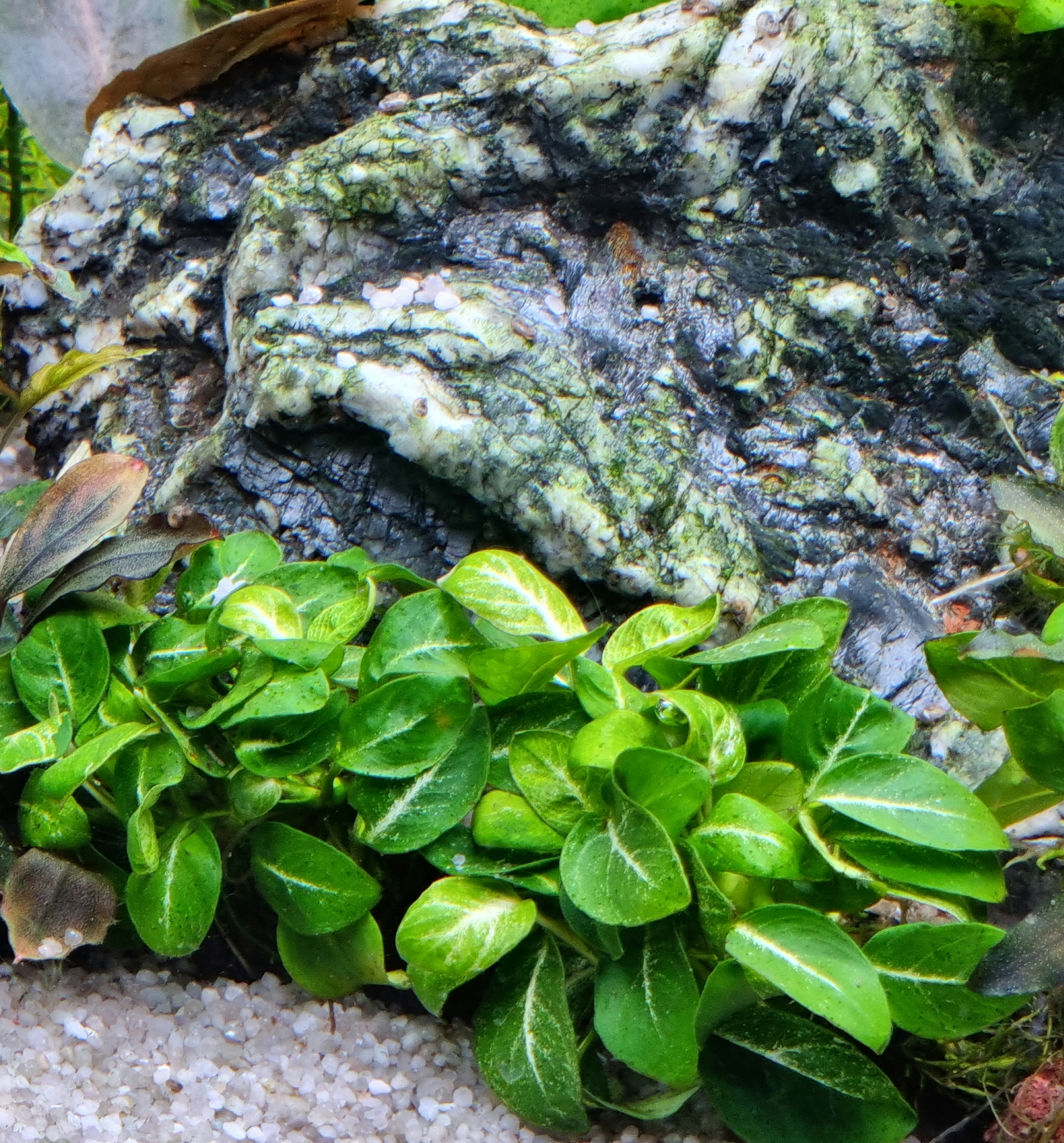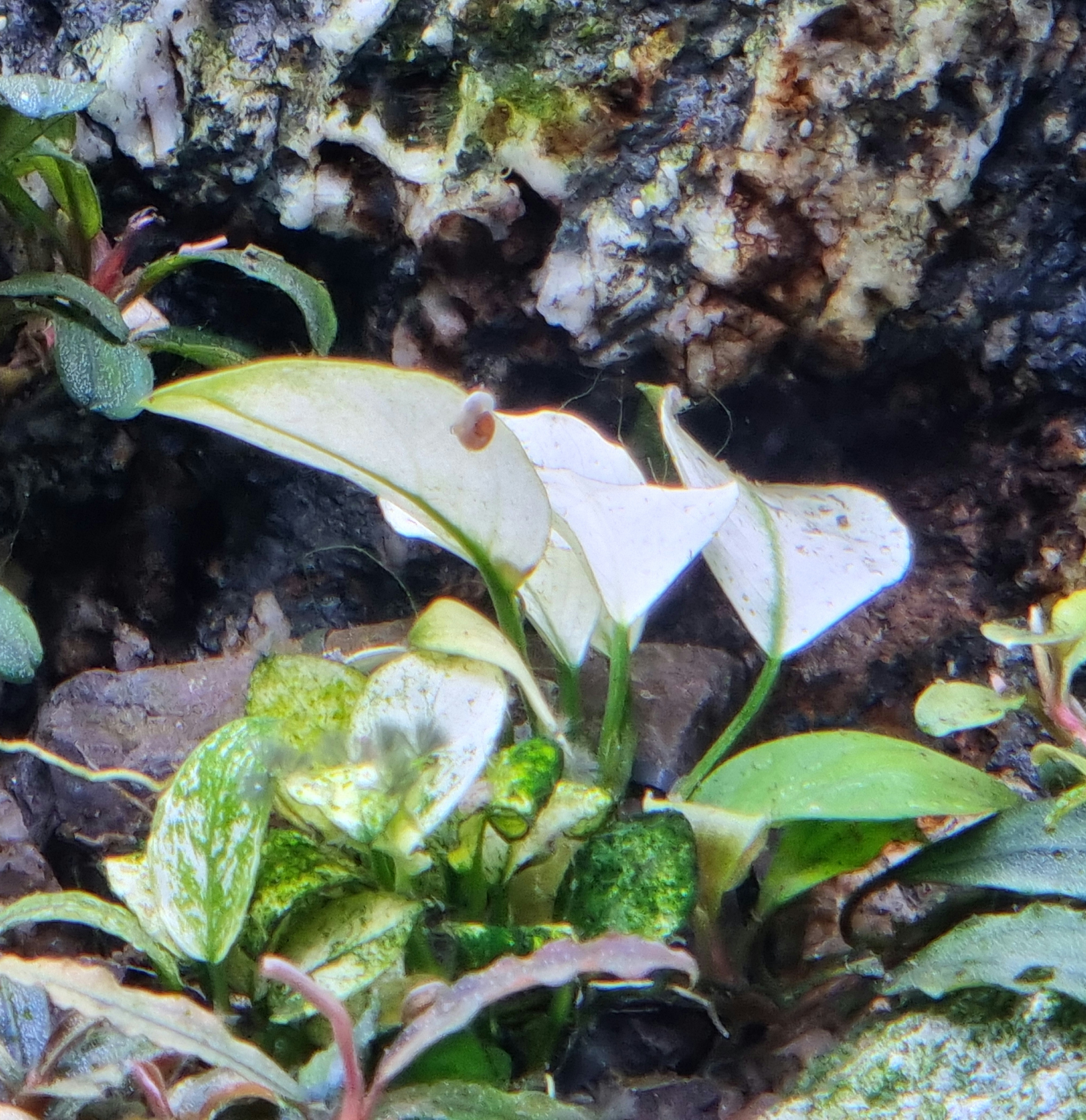Анубиас стардаст джиант. Вроде прижился. И начал поперливать.