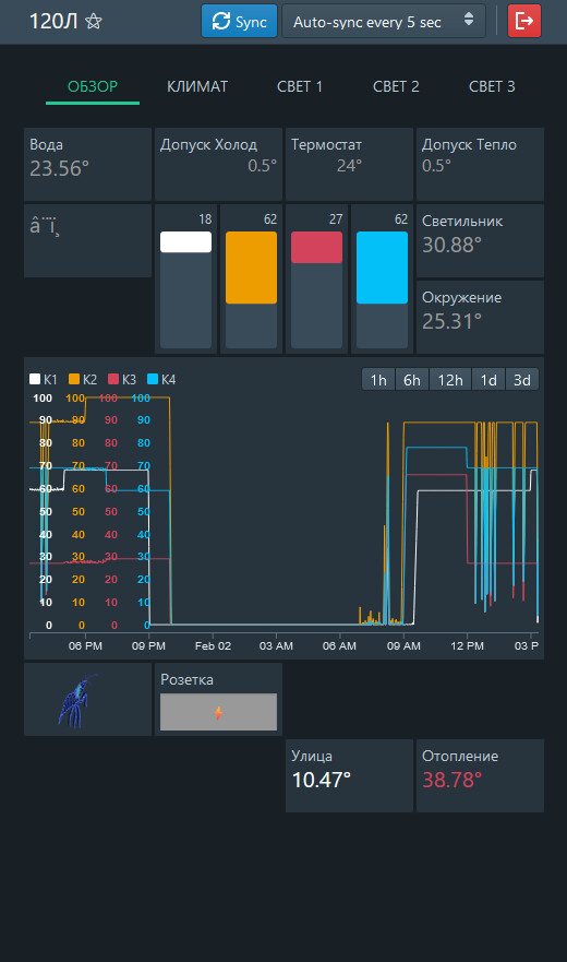 VALKNUT 3842 Жалоба Опубликовано 1 февраля 3 минут назад, Lx671 сказал(а): Так у вас через blynk разве этих функций нет? Про отсутствие каких функций мы говорим? Всё, что нужно у меня есть в blynk*, но телега, это то, что всегда под рукой, на любом устройстве, с любой ОС. Получить моментальную сводку, не доставая смартфон, вроде как удобно. * картинки Спойлер И компактно в телеге... Удобно, на мой взгляд. Поделиться сообщением Ссылка на сообщение