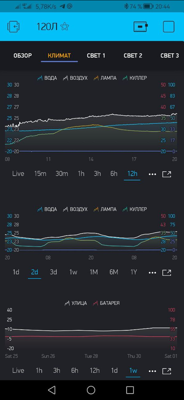 Lx671 389 Жалоба Опубликовано 1 февраля @VALKNUT Так у вас через blynk разве этих функций нет? У меня эти функции "по умолчанию" через мой сайт. Про телегу примеры смотрел, оформление телегино только)) а вообще удобно иногда... Здесь температура в течении суток чуть меняется. Поделиться сообщением Ссылка на сообщение