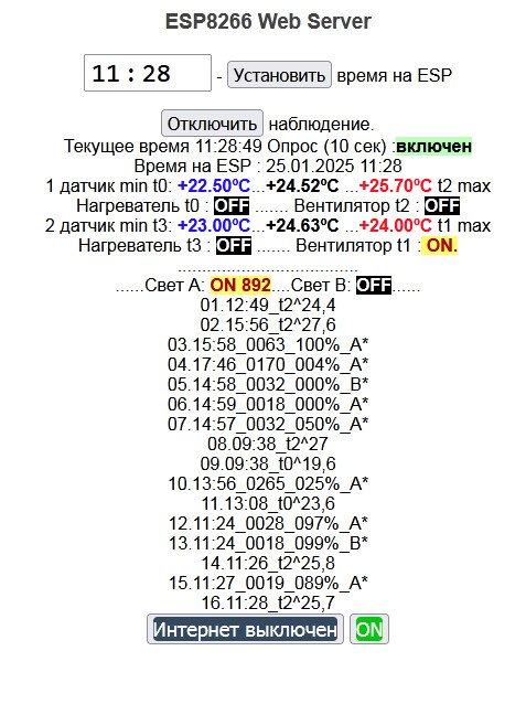 Lx671 389 Жалоба Опубликовано 22 апреля В 20.04.2025 - 21:45, VALKNUT сказал(а): Что-то уже и не вспомню, попробуйте найти в примерах.. Вот в примеры вы меня правильно направили)) У Гувера уже не 1-ый раз попадаю на неполное или кривое описание. Это 2-я web-морда, работает вместе с 1-ой(интернет), если не отключить. Получилось прямая передача данных с любого устройства Wi-Fi и запись расписания во флэш на ESP. Теперь оно самостоятельное. Чихирос нервно курит в туалете)) 1 VALKNUT отреагировали на это Поделиться сообщением Ссылка на сообщение