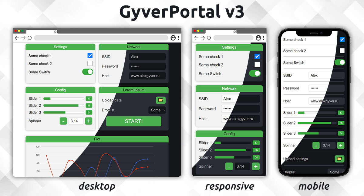 Lx671 389 Жалоба Опубликовано 4 апреля 10 часов назад, VALKNUT сказал(а): открыли его в браузере с компа/телефона и что-то (команду) хотите передать на сервер, так? Не команду (это везде примеров ...), а цифровую инфу (переменную). 10 часов назад, VALKNUT сказал(а): Гляньте GyverPortal, там уже куча всего напридумано и вполне юзабельно. Там везде описывается веб-морда через интернет, делают контейнеры на основании их библиотек, это у меня давно есть. И зависоны убрал. Например нужно установить время на ESP с телефона без участия интернета.)) Поделиться сообщением Ссылка на сообщение