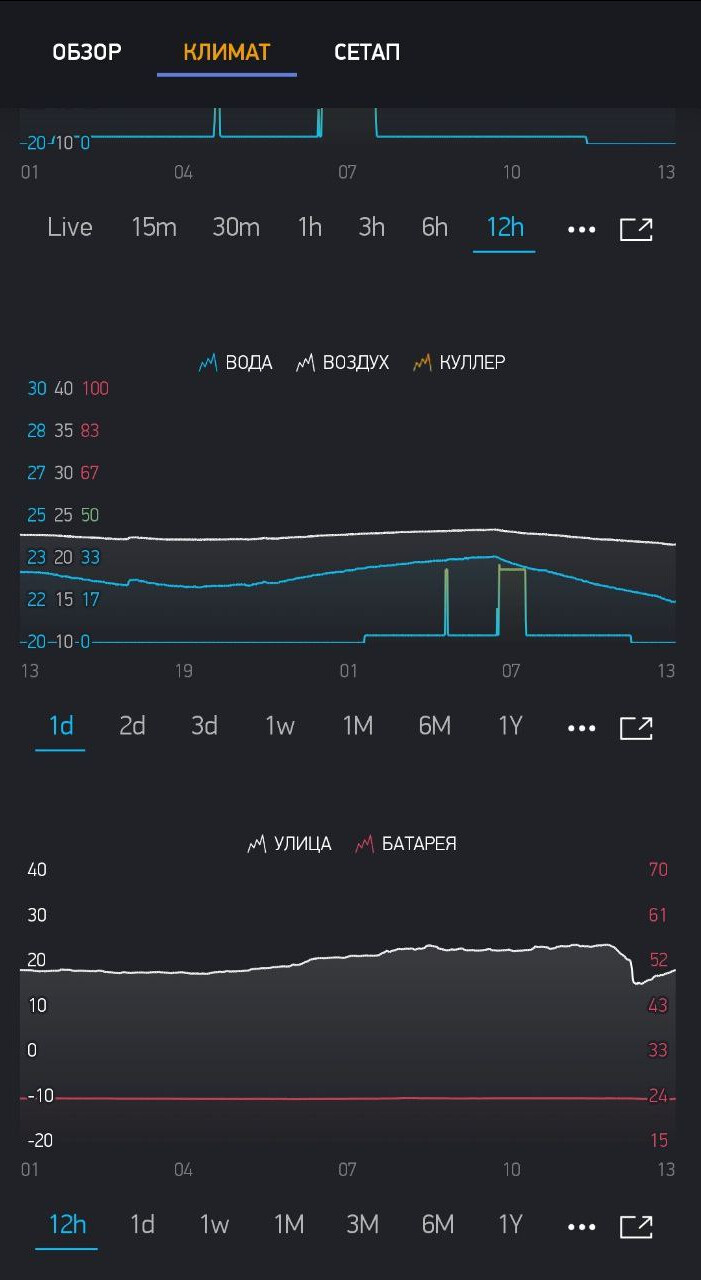 VALKNUT 3842 Жалоба Опубликовано 23 июня Паять или не паять, вот в чем вопрос (с) Датчики DS18B20 сами по себе довольно точные, но.. Практика показала, что эти датчики подключенные через разъемы, рано или поздно начинают давать "пилу". То есть то правильно измеряют, то не правильно, а порой вообще не измеряют.. Вот график датчика на разъеме... Специально заскринил 12-ти часовые графики, для наглядности.. Есть пара устройств, где провода датчиков тупо припаяны к выводам платы.. На второй картинке нижний график (улица, батарея). Я к тому, что конечно удобно иметь разъем для замены датчика температуры "на ходу", но с практической точки зрения.. лучше открыть устройство и перепаять 3 провода, чем сомневаться в точности замера. Для примера: 3 датчика находятся в одном отсеке сампа НО! Датчик на разъеме выдает "ВОДА" 23.55°С и всё время его "колбасит".. А два других датчика припаяны и показывают одну температуру.. "ВОДА" 21.56°С и "ВОЗДУХ" 21.56°С.. /напомню, что три датчика находятся в одинаковых условиях/ А я столько красивых разъемчиков накупил.. Ну и мой излюбленный способ контроля.. телега-бот 02:13 - запуск охлаждения 10:28 - запрос состояния (вручную) /значения в десятых/сотых разные, это приемлемая погрешность/ 11:58 - уведомление об окончании охлаждения до заданной температуры 13:53 - запуск нагрева 13:55 - запрос состояния (вручную) Поделиться сообщением Ссылка на сообщение