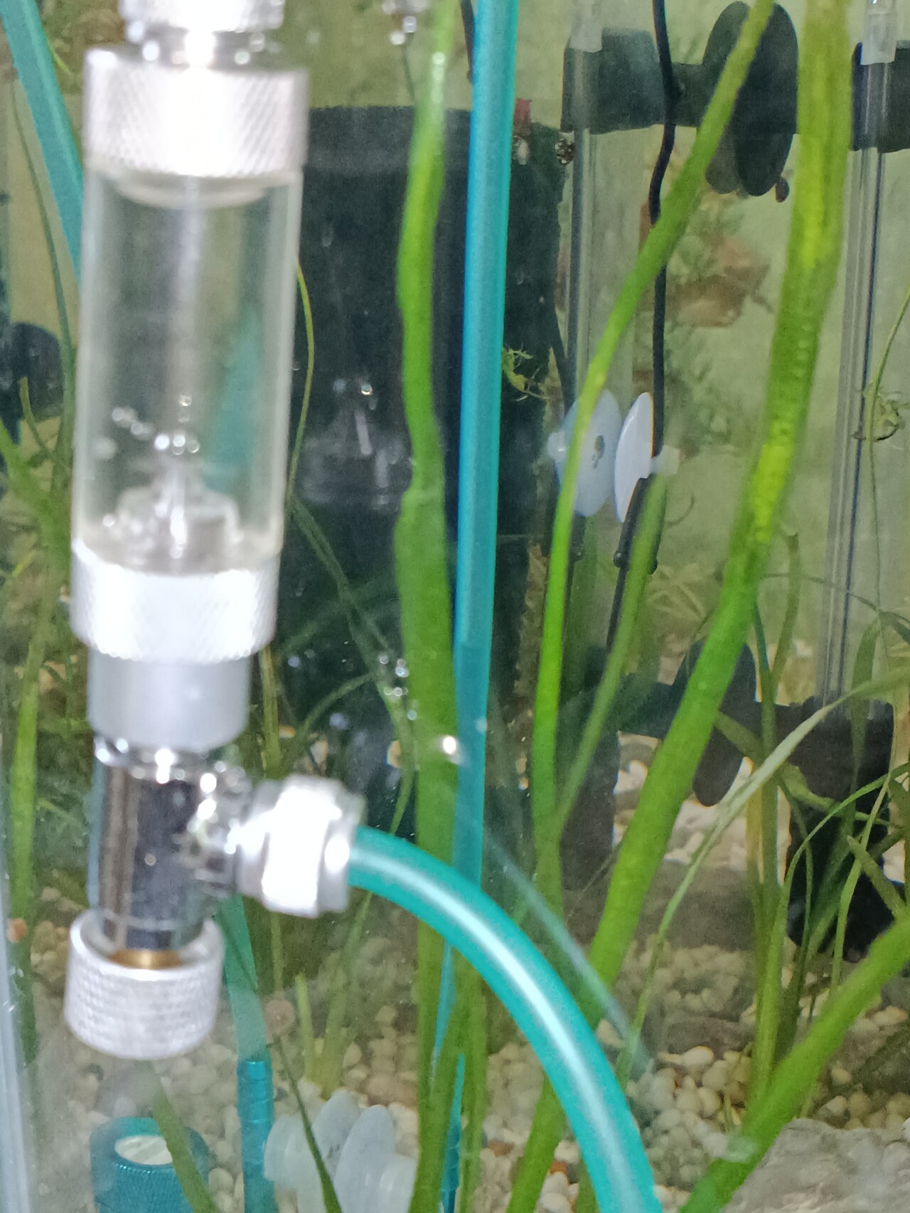 Поищи через Aliexpress ZRDR CO2 генератор. И посмотри там принцип работы. На концах трубок использованы утяжелители, чтобы трубки всегда были на дне и возможно они решают проблему, что ты нашел. Но это маловероятно