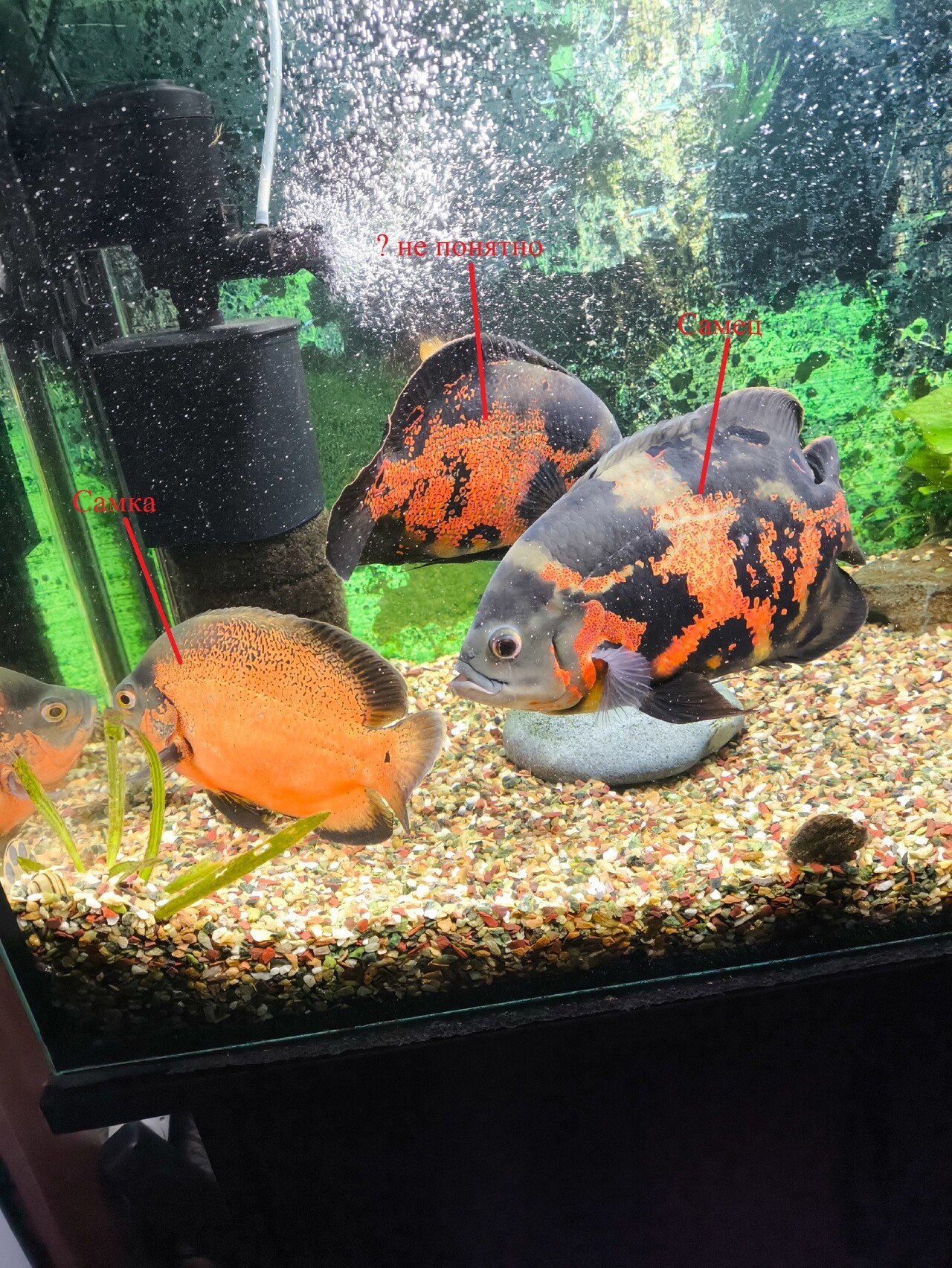 Kvesting 1 Жалоба Опубликовано 23 декабря, 2024 Помогите разобраться с астронотусами, а именно определить их пол. В общем такая история, живут у меня 4 астронотуса которым чуть больше года, есть пара которая уже отметала икру 3 раза из которых 2 раза успешно, есть потомство, так вот начал прибиваться в эту пару еще один из астронотусов, отгоняет самку от самца и пристает к самцу, я всегда думал что эта особь самец так как не разу не метала икру. Такой вопрос может ли самец отгонять самку и заигрывать с самцом ? Поделиться сообщением Ссылка на сообщение