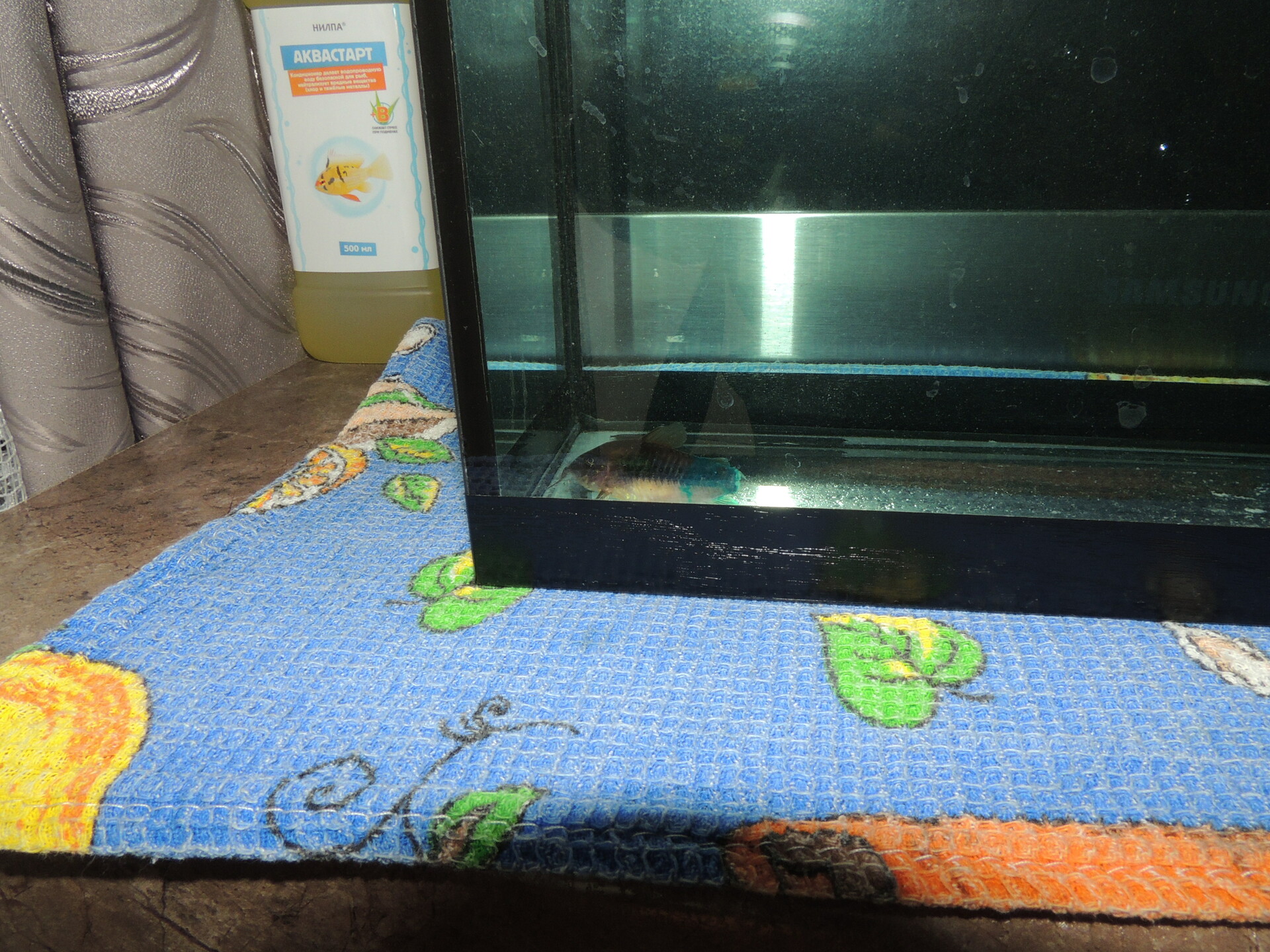 Mick1974 526 Жалоба Опубликовано 30 апреля Вот сфоткал в отдельной емкости сомика без хвоста. Не знаю это излечимо или нет, сегодня увеличил дозу фурацилина и добавил метиленки. Пока жив будем наблюдать. Чтобы не пугался накрыл емкость полотенцем. Пытаюсь вспомнить в следствии чего могло произойти - склоняюсь что произошло с потеплением воды. Всю зиму температура была в районе 23-24 градусов, а буквально недавно когда было потепление, вода в аквариуме-отсаднике поднялась до 26 градусов. Тогда и обнаружил что хвост начался разрушаться. А буквально через пару дней он уже без хвоста. 5 Пятница, VALKNUT, Камень и 2 люди отреагировали на это Поделиться сообщением Ссылка на сообщение