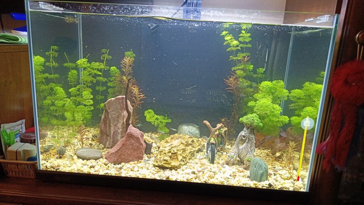 Волька_ибн_А 6901 Жалоба Опубликовано 16 января В 15.01.2025 - 00:01, Серёга_Морячок сказал(а): 2 анцитруса 1 вроде как обычный, со слов понимающего гораздо более чем я человека, а так же анцитруса №181 на фото виден рыб (слева у переднего стекла который), подозрительно напоминающий малость стрессующего (а от того неяркого и пегого) птеригоплихта... Если это реально птер - вот вам свезло со знающим человеком... Рыба несколько, ээээ.... не для такого аквариума. Ему б литров в 150-200, хотя бы. Но могу и ошибаться. Мож, реально, анц?? А 181го чот не вижу там. В 15.01.2025 - 00:01, Серёга_Морячок сказал(а): Посадил зеленуху, длинностебелку так называемую, Нимфея, Ротала красная, Лимнофила зелёная. Грунт натуральный камешки мелкие от 0,8 до 2см. грунт неудачный и для рыб, и для растений - корням будет голодно. Длинностебелька начнёт пускать боковыеи корни по стеблю. красоты они траве не добавляют. А нимфея... Пока она у вас мелкая - норм. Но вот, например, как она выглядит в не самом благополучном последнее время аквариуме в 243 литра (90*45*60 - длина*ширина*высота) при том, что её тут регулярно и беспощадно корчуют, пропалывают и обрывают листья . В 70 литрах это будет весь аквариум под один куст. 1 Paracheirodon отреагировали на это Поделиться сообщением Ссылка на сообщение