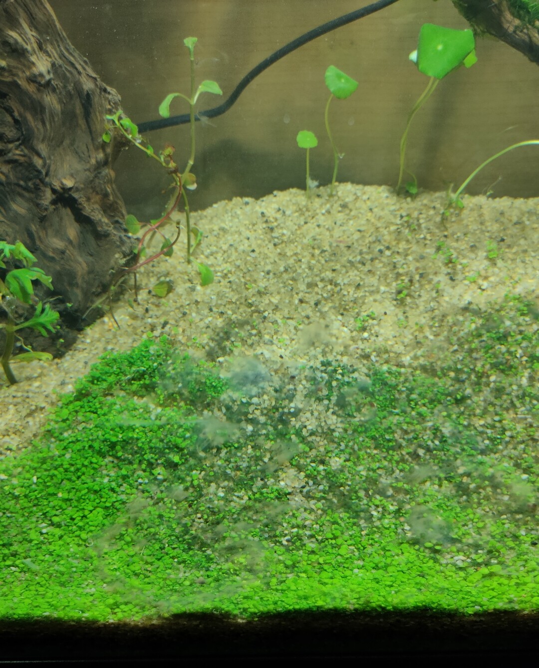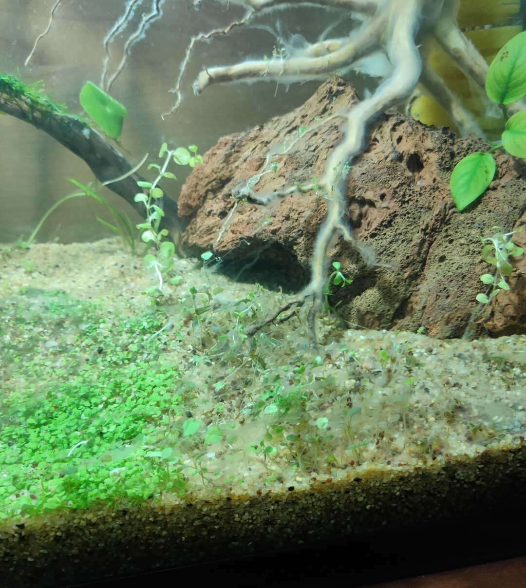 Свет кстати пока что на 5 часов 50вт прожектор, всю неделю почти стояло на 3часа, два дня на 4-5 часов. Может из-за малого света растения погибают? Но страшно ставить большее количество, из-за риска появления водорослей.