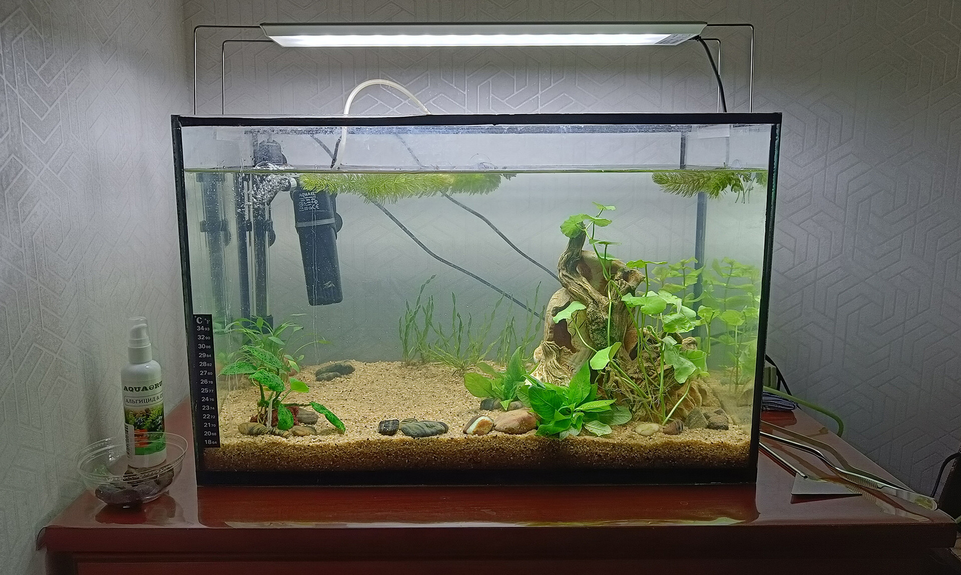 Собственно, по грунту всё. Аквариум выглядит постапокалиптично пугающе. Был почти нормальный рыбий домик... понесло меня.