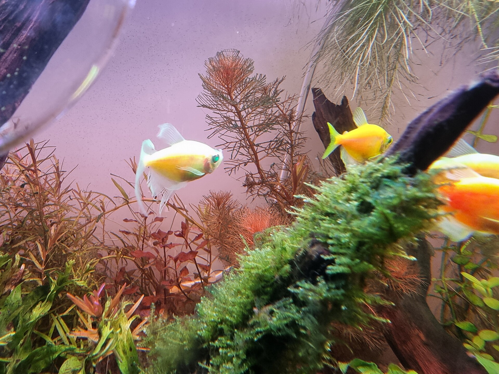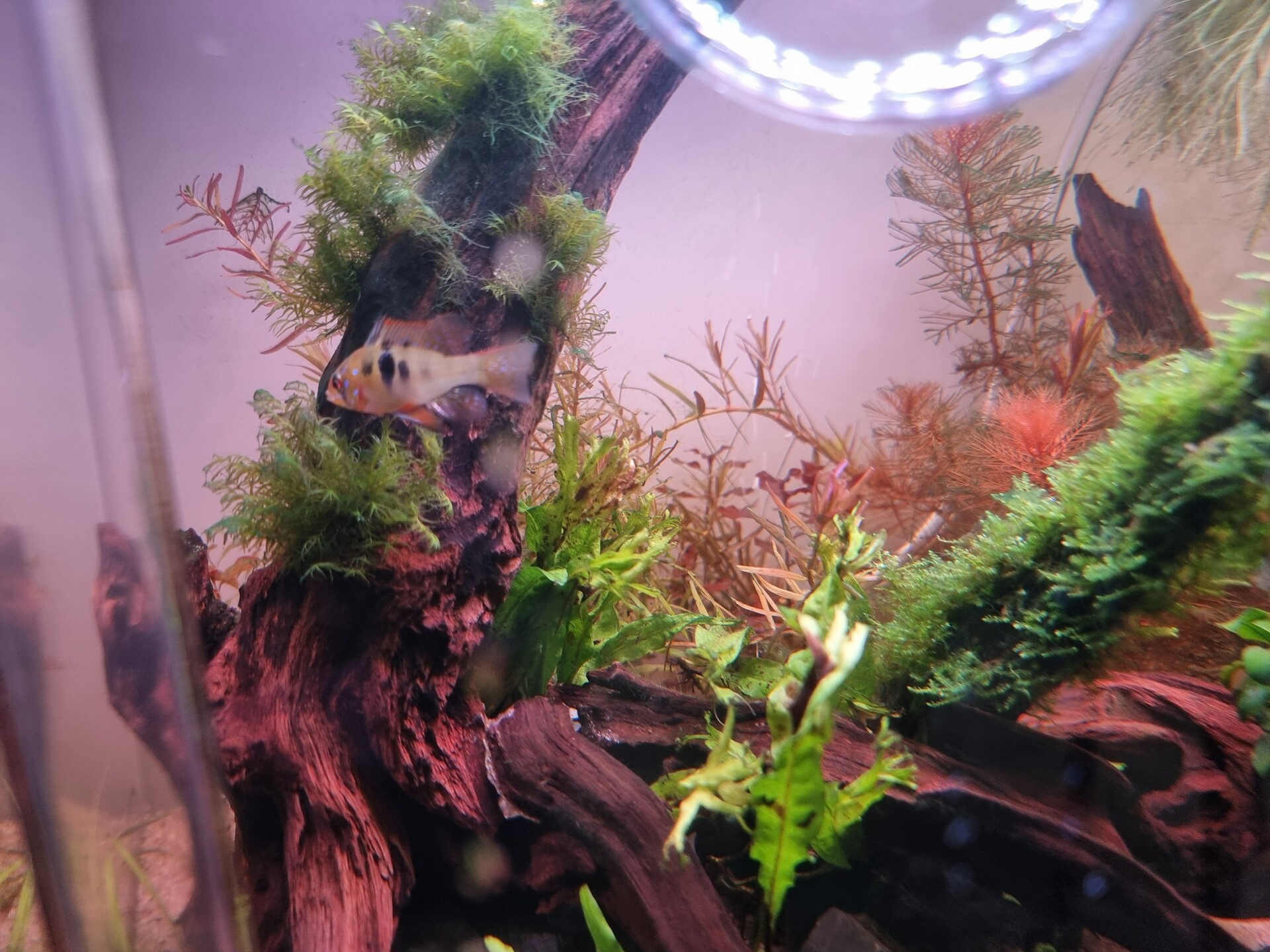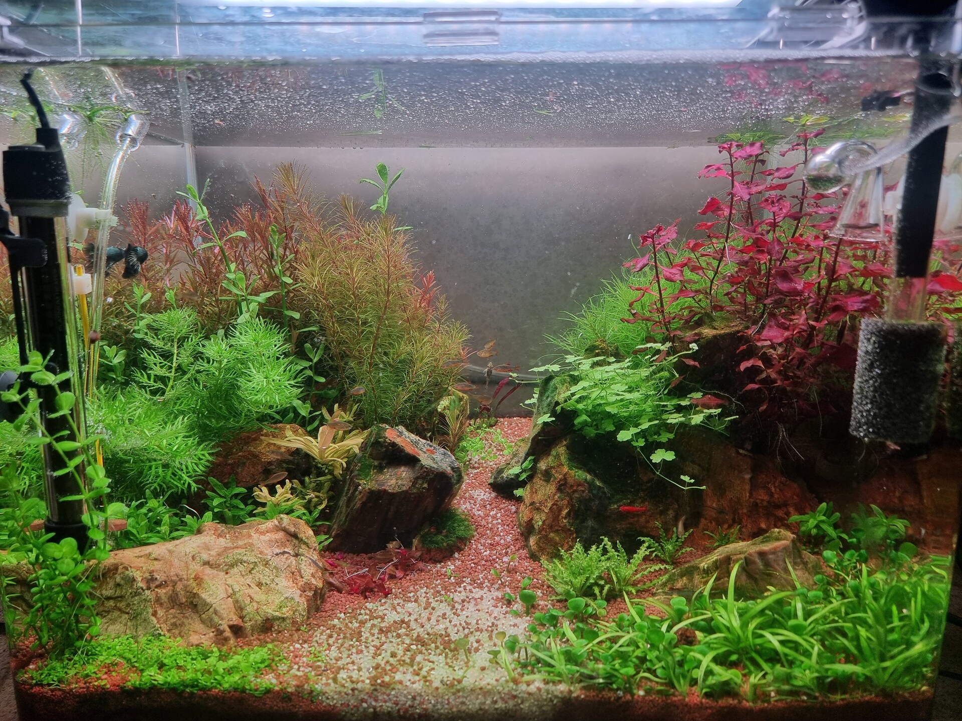 Абыч 290 Жалоба Опубликовано 17 апреля Ребяты, надо помощь) Аквас запущен 23 марта. Обьем по воде литров 27 наверно (номинал 36) Грунт кварц 3-4 мм. Свет китаец FG158 четотам, 2100 люм вроде. Светит на 80% с 18 до 24. Удо watersci NK/PK отдельно, железо 2 вариации по 0.3 мл в день (88 г/ л no3, 8 г/л po4) Co2 нет Трава: винделов, глоссостигма, чето там бразильский на "Л":) анубы 2 вида, крипт мелких два вида (пигмей и курчавая чтоли), перистолистник красный ну и по мелочи насовано , чисто посмотреть как оно без со2 и света. И мхи феникс, крисмас и пламя. Живность: 6 тернеций древних (2.5 года живут) , 2 рамирези, 2 анцика. улитки какието Тесты: No3 -5мг, po4 0.25. Запускался на старом грунте (с аквы 8 мес) и фильтр тетра экс600 гонял там же пару недель. Рыб частями селил. Вода осмос с ремом той же фирмы. Kh 3 gh 8. Тдс 230 Вопрос номер 1: ph тут 7.4-7 5. Камни могут влиять? Шипели в уксусе бодро, но их штук 5, весом грамм 400, решил рискнуть. Вопрос 2. Появились синезеленые дня 4-5 назад, облепляют растюхи, на грунте нет. Как я понимаю изза органики от коряг? После запуска вода цвета крепкого чая была, сунул пакетик пуригена в фильтр, стала норм. Памятуя что он не безграничен и начинает потом отдавать- недельку назад вытащил и почистил в белизне. Очаги вытаскиваю сифонкой, но на след.день новые нарастают. Подмены по 3 л делаю. План: щас засунул снова пуриген, 2-3 дня, понаблюдаю, так же сифонка очагов, замена 3л воды. Если нет - четверть таблетки эритромицина залью. Что думаете? Это запуск и вот сегодня Поделиться сообщением Ссылка на сообщение
