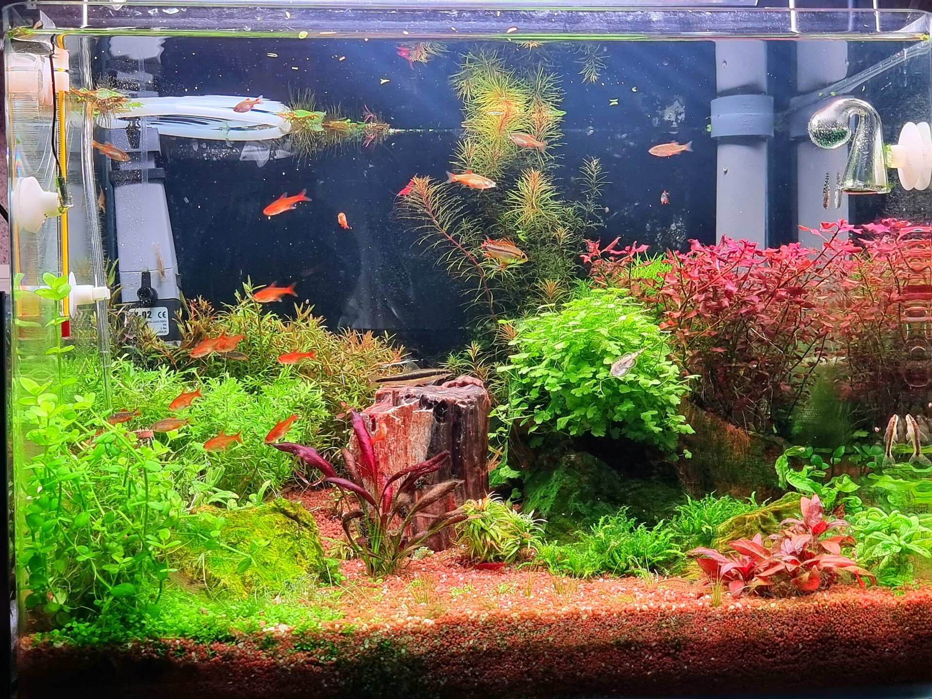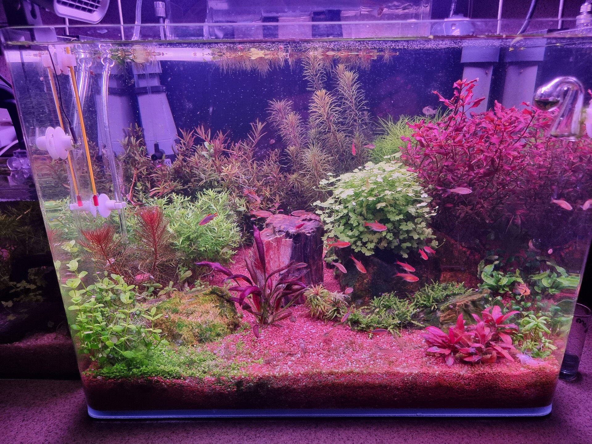 Абыч 290 Жалоба Опубликовано 8 июня Итак, за прошедшие 3 недели) В ходе борьбы с эдиком, поменял удо на аквабаланс. Подмена 80%, налил 25/2 мг/л нитрат/фосфат, забил на неделю потом еще подмена 80%, опять 25/2 нитрат/фосфат и железа плюхнул 1 мг/л. По итогу 2й недели эдик сдох. Но...? 1) начал загибаться стаурогин, прям сильно-сильно. Причем калий то был, даже после 2х обнулений воды я мерял, там 10-15 мг/л оставалось... может ему сам факт изменения содержания калия не понравился 2) появился олений рог. Причем исключительно по дну (на фотке на эхе афлейм, хелфери, альте мини и стаурогине в углу справа). Хз, из вариантов микро/железо (учитывая убойную дозу налитую). Либо нехватка со2 . Все таки самп мне кажется сильно его выветривает, дропчекер зеленый, но ближе к темному. Ну посмотрим че дальше, сделал стрижку слева, теперь течение норм, сегодня 50% подмена, за неделю внесу 30/3 нитро/фосфат и железа 0.3. Посмотрим че будет 6 Пятница, Старый Юнат, Gala17 и 3 люди отреагировали на это Поделиться сообщением Ссылка на сообщение